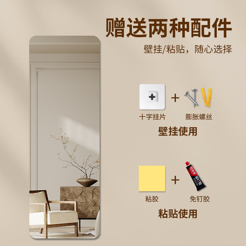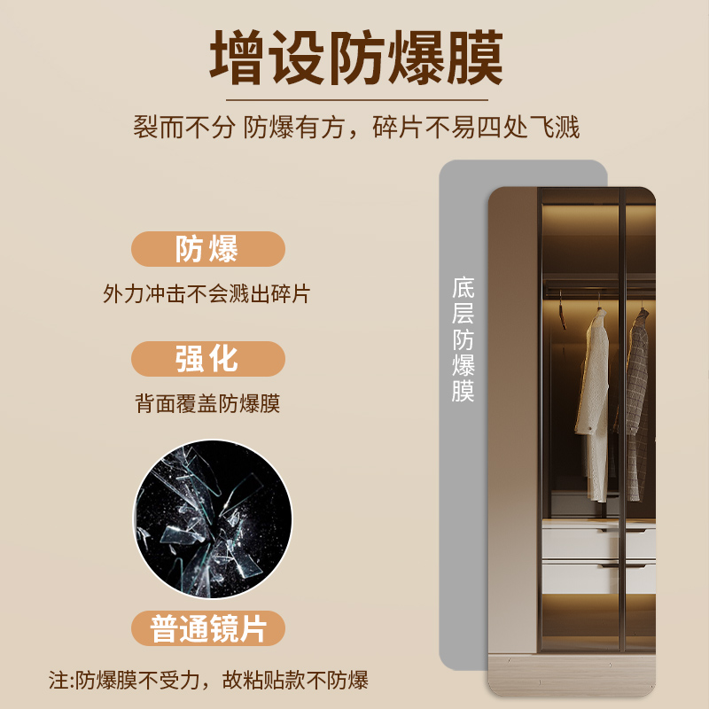 轻奢无框全身镜壁挂式免打孔穿衣镜卧室家用防爆试衣贴墙自粘镜子