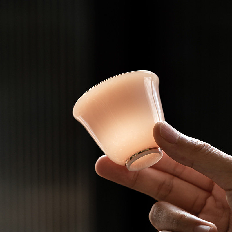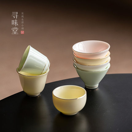 宝石玉瓷金边品茗杯|羊脂玉瓷小茶杯纯色中式陶瓷家用功夫茶具