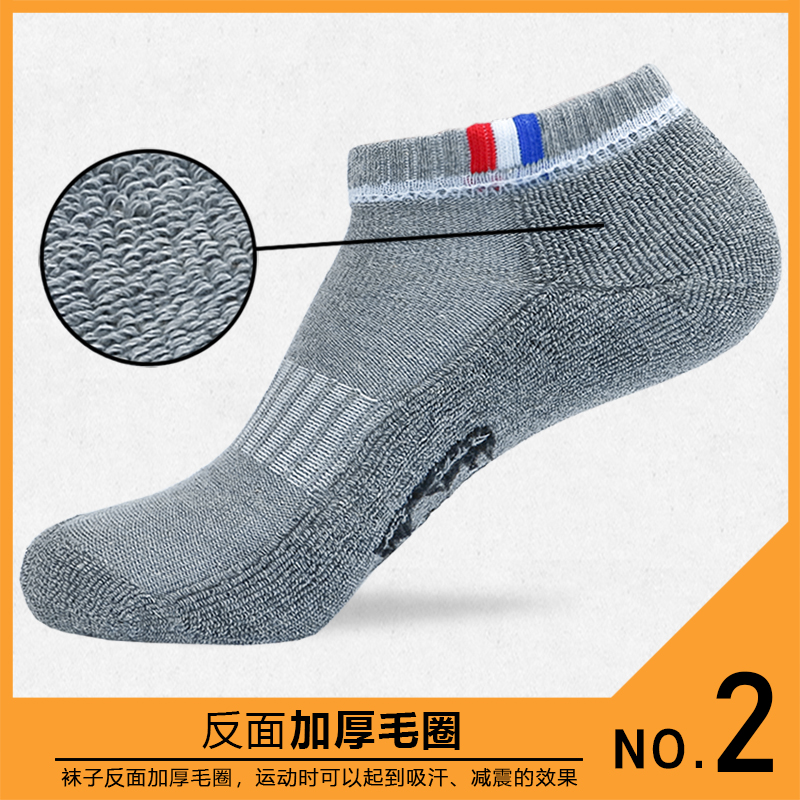 毛巾袜运动袜低腰纯棉矮腰短筒全棉加厚男袜子船袜低帮毛巾底短袜