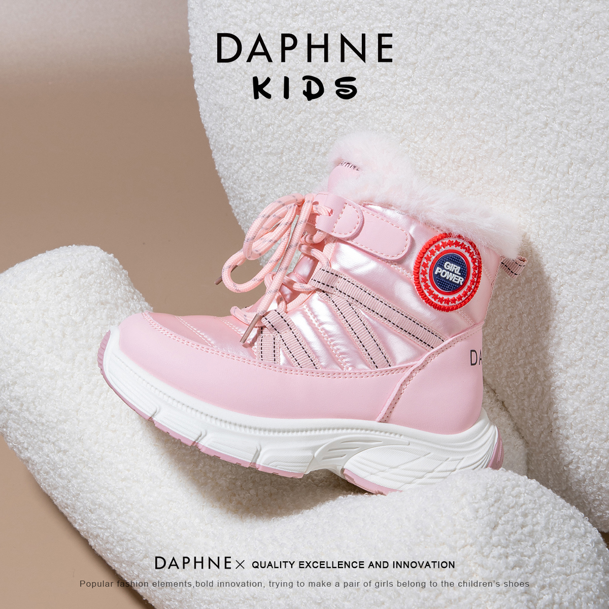 达芙妮女童鞋雪地靴2025冬季新款儿童加绒鞋子防水靴子加厚大棉鞋