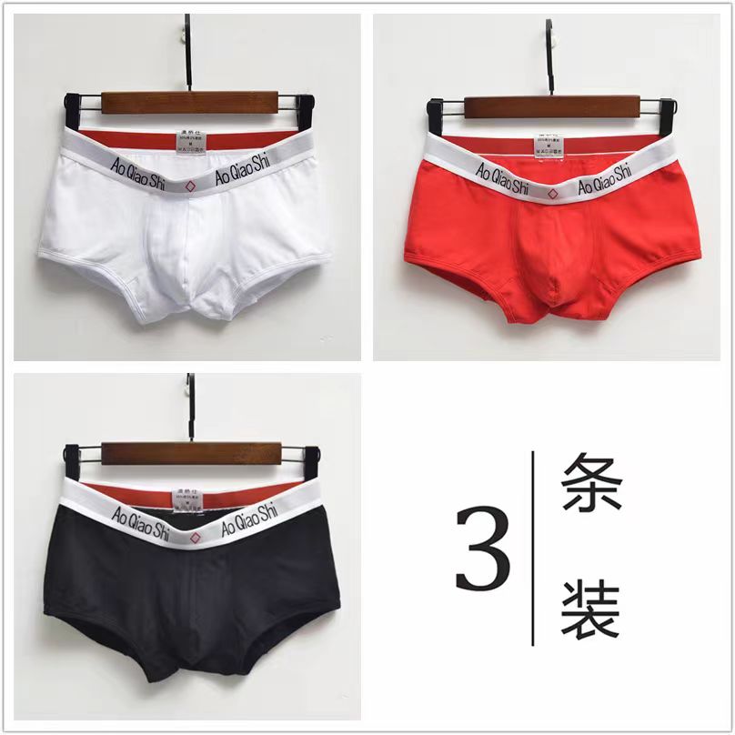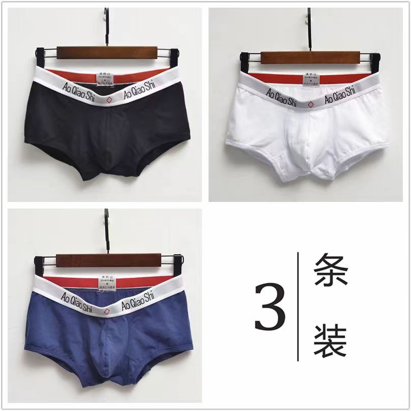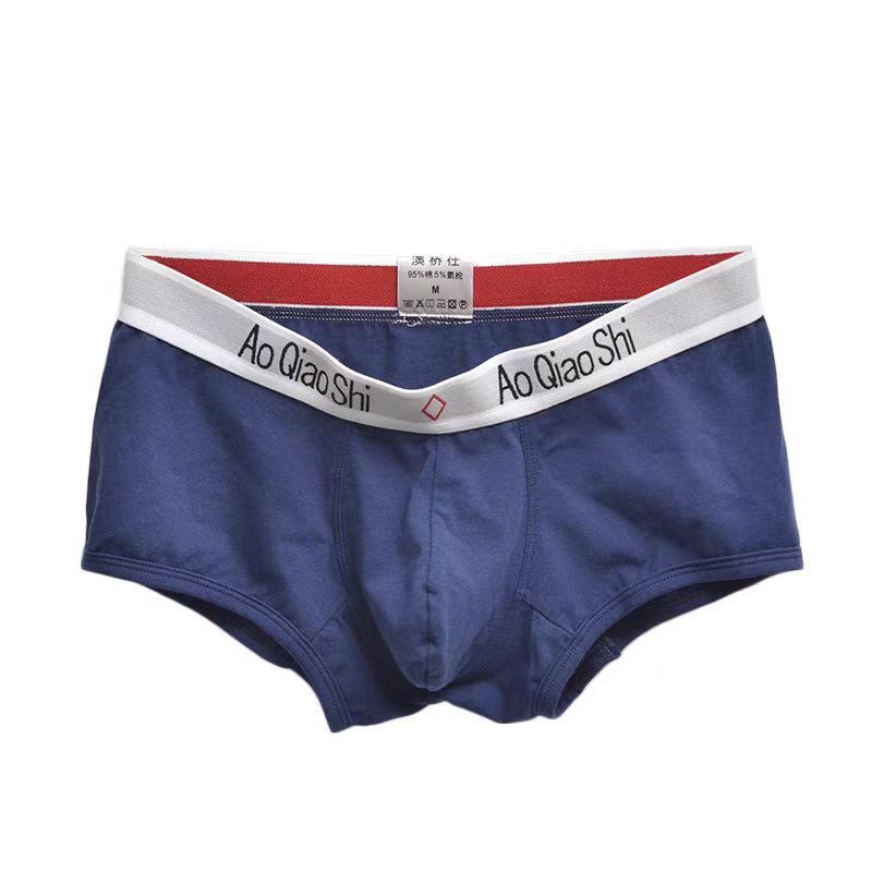 男士内裤纯棉男生新款纯色低腰U凸裆部双层大囊袋平角裤舒适宽松