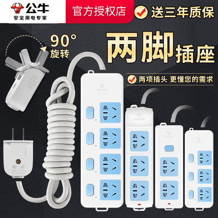 公牛两脚插排插座接线板二脚眼项双孔2插头宿舍延长转3脚三转换器