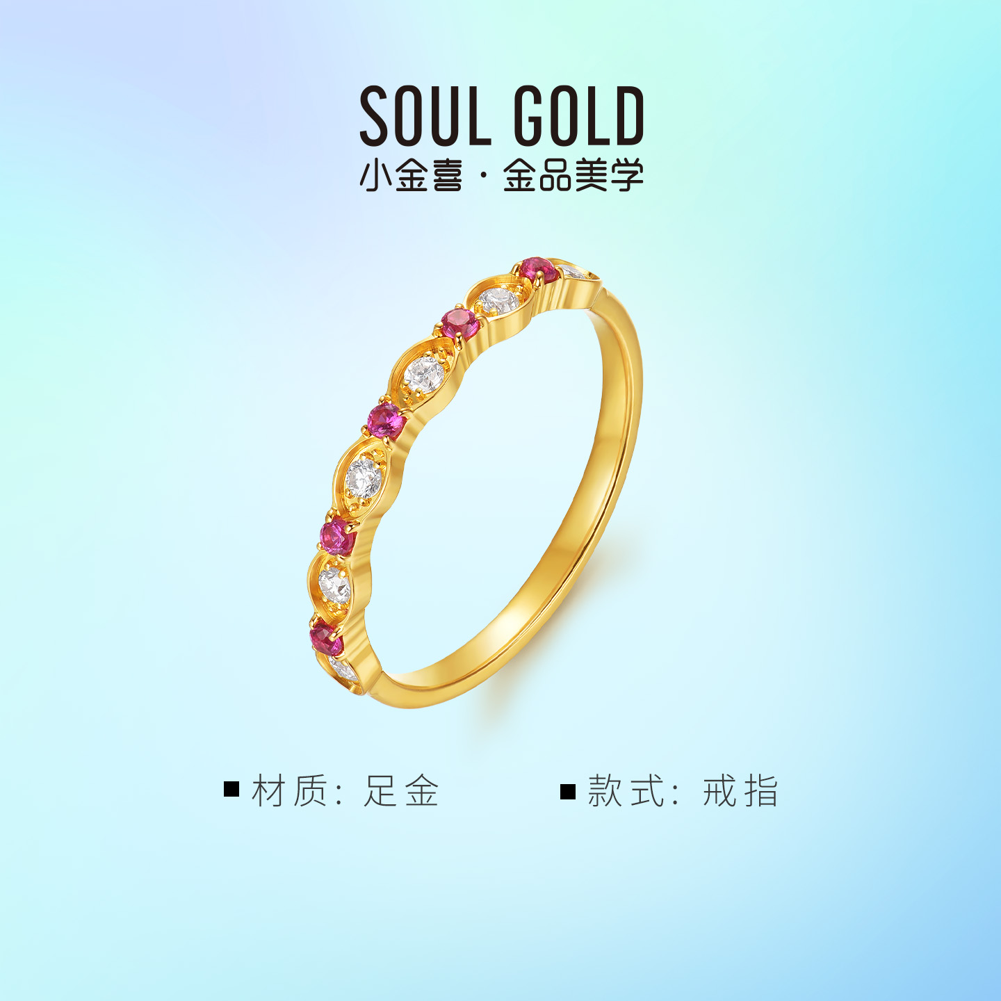 小金喜花园漫步5G黄金戒指 今日宜系列足金锆石镶嵌指环AFM0482