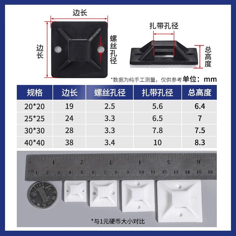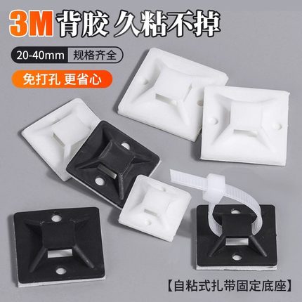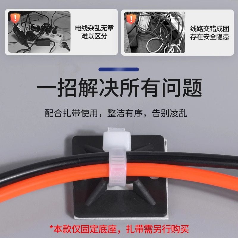 带胶自粘式尼龙扎带配线吸盘定位片理线器墙面贴片电线固定座卡扣