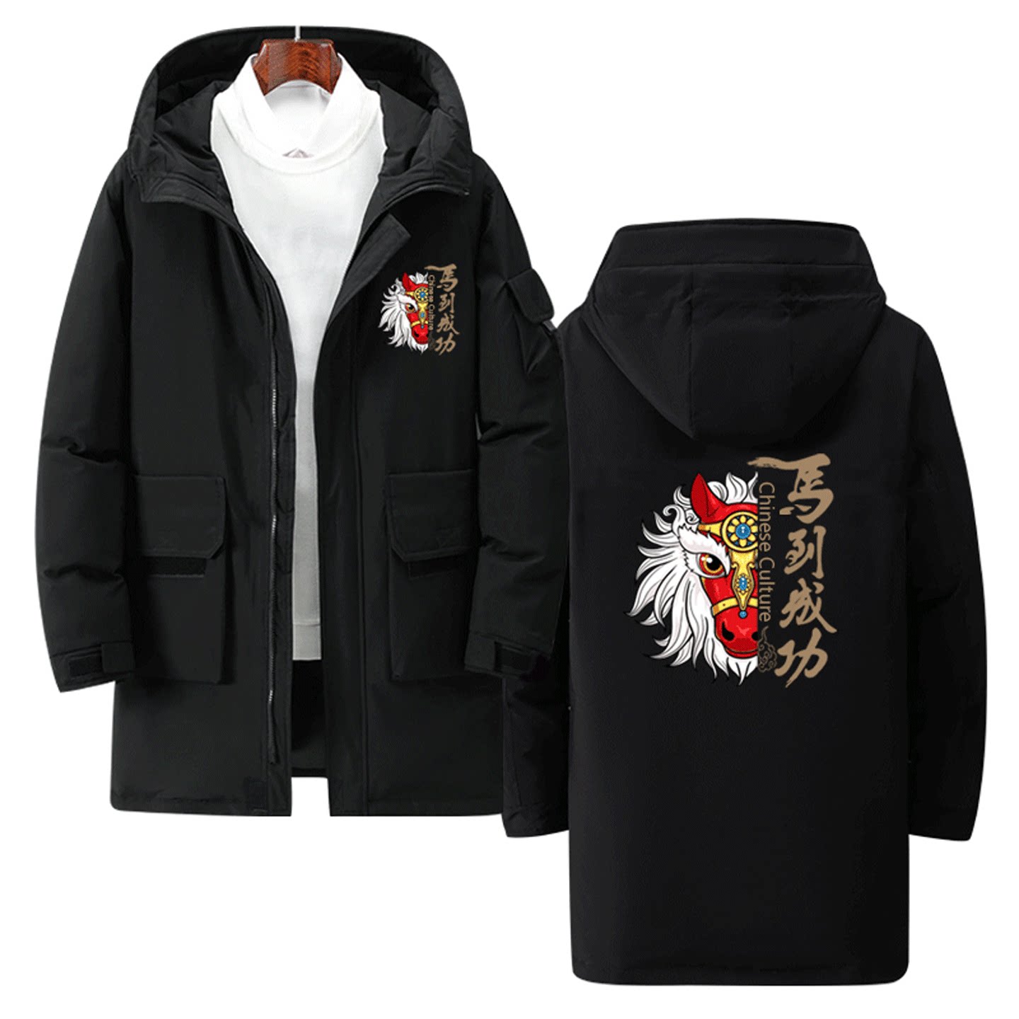 2026新年马年印花卡通定制中长款羽绒服印花男女情侣青少年秋冬季