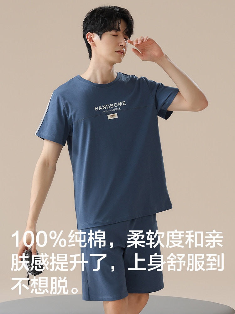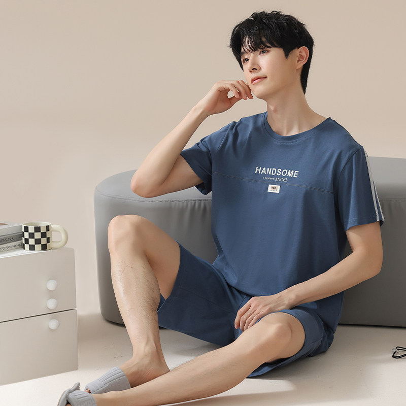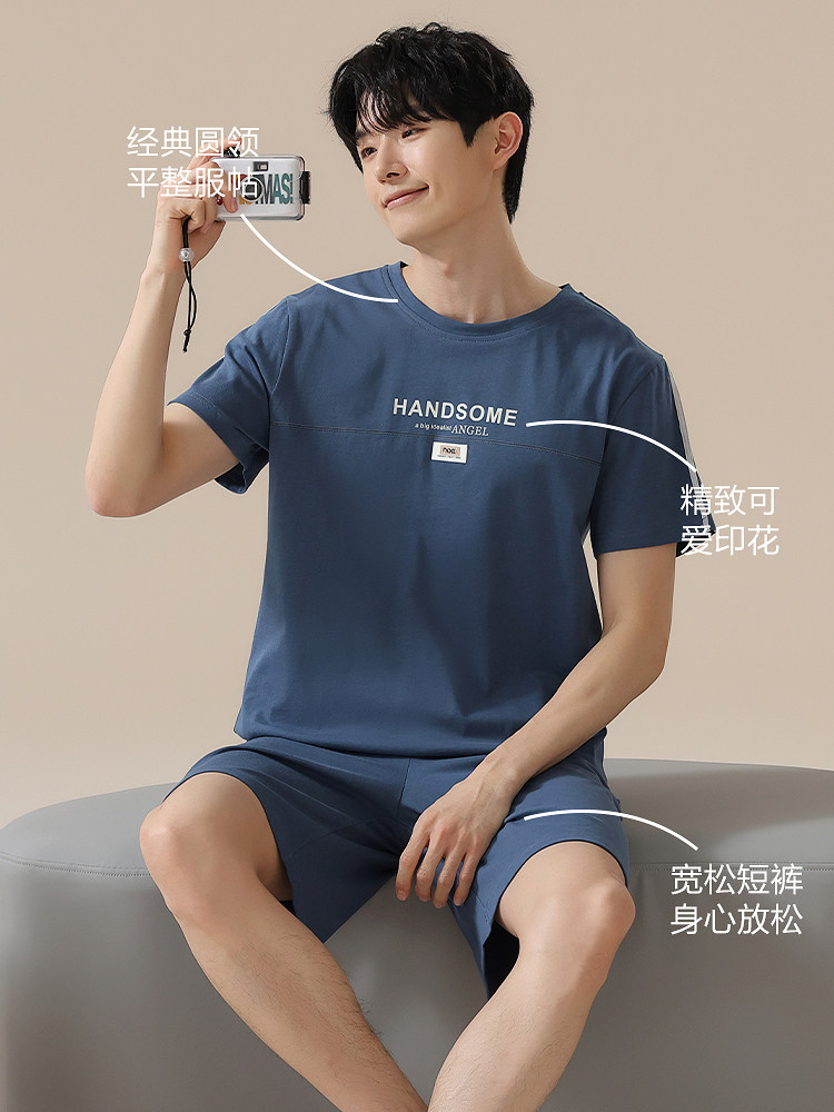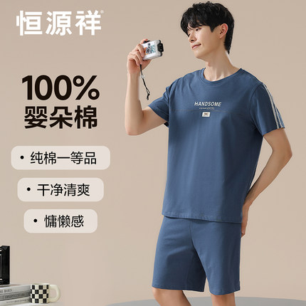 恒源祥夏季薄款纯棉睡衣男士短袖裤新款宽松休闲可外穿家居服套装