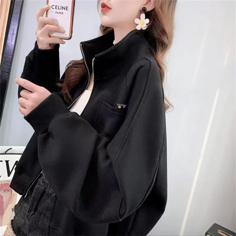 爆款立领卫衣棒球服2025春秋装新款洋气加绒设计感上衣女士短外套