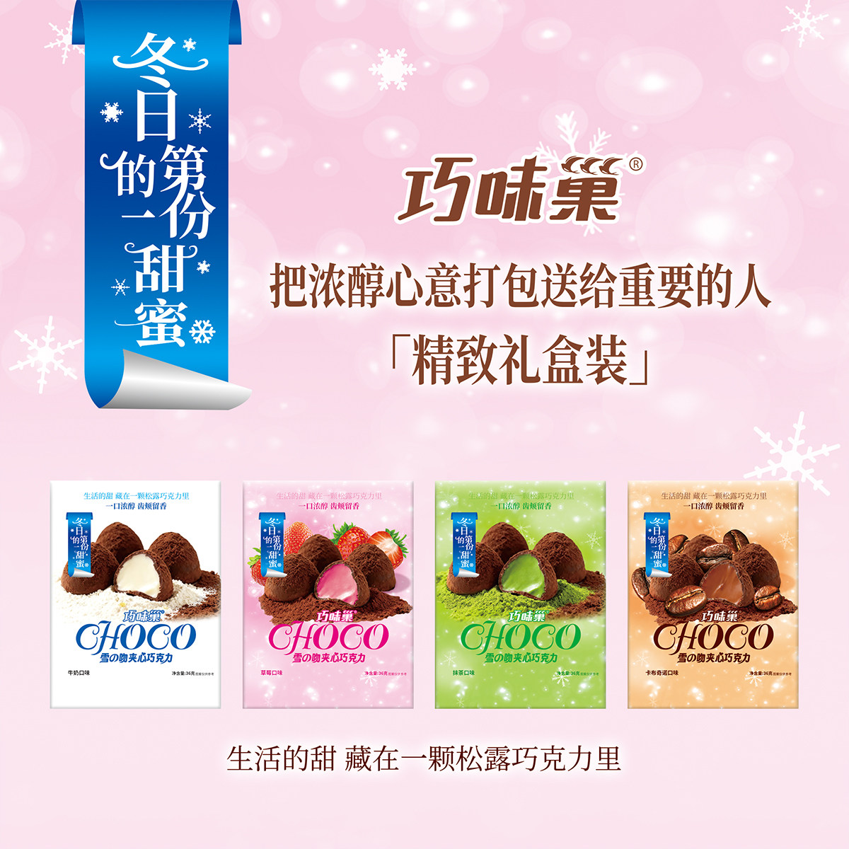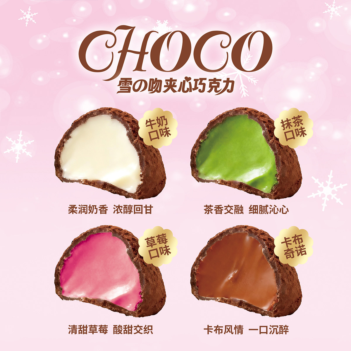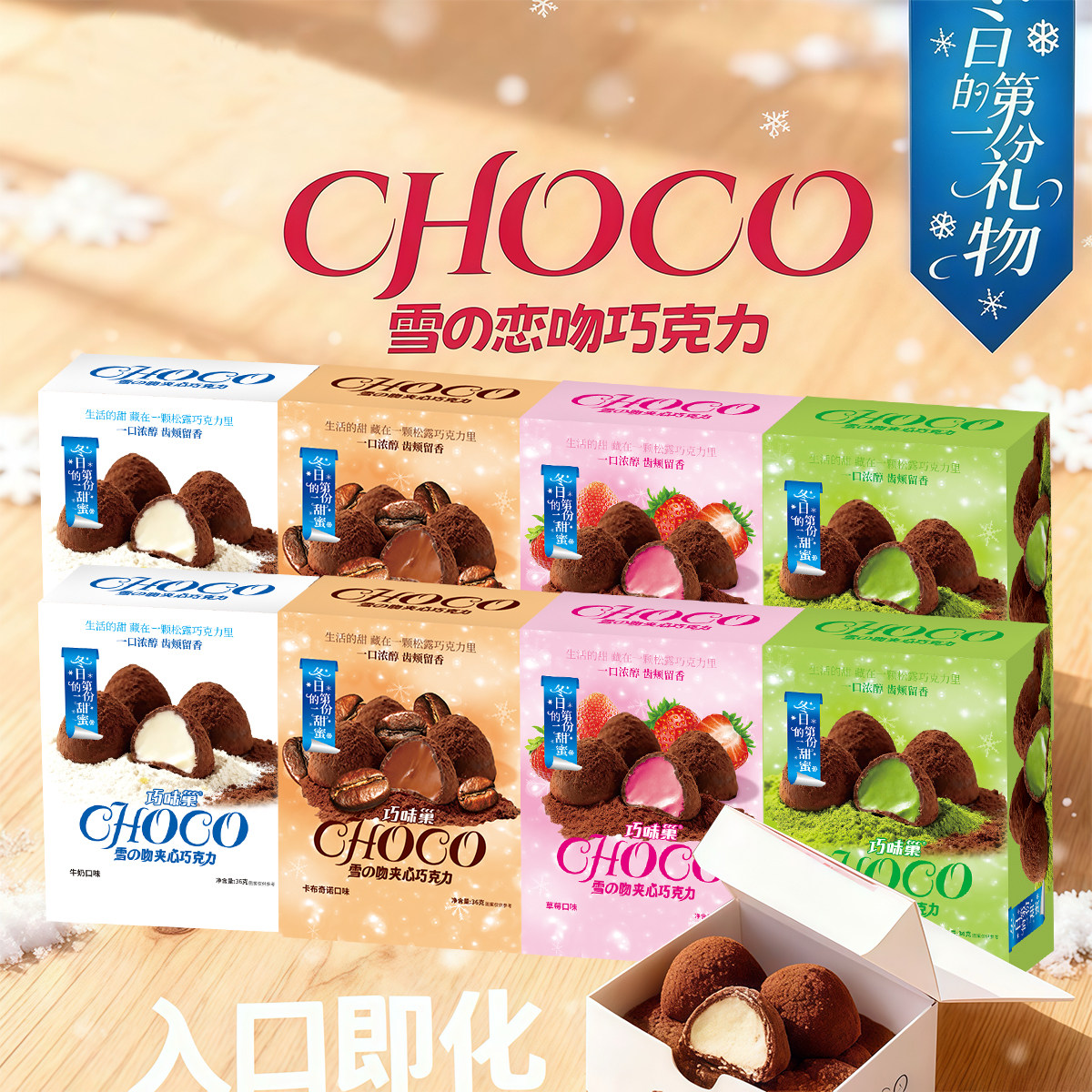 雪吻巧克力冬日温暖抹茶夹心草莓味抹茶牛奶味网红糖果零食品礼物