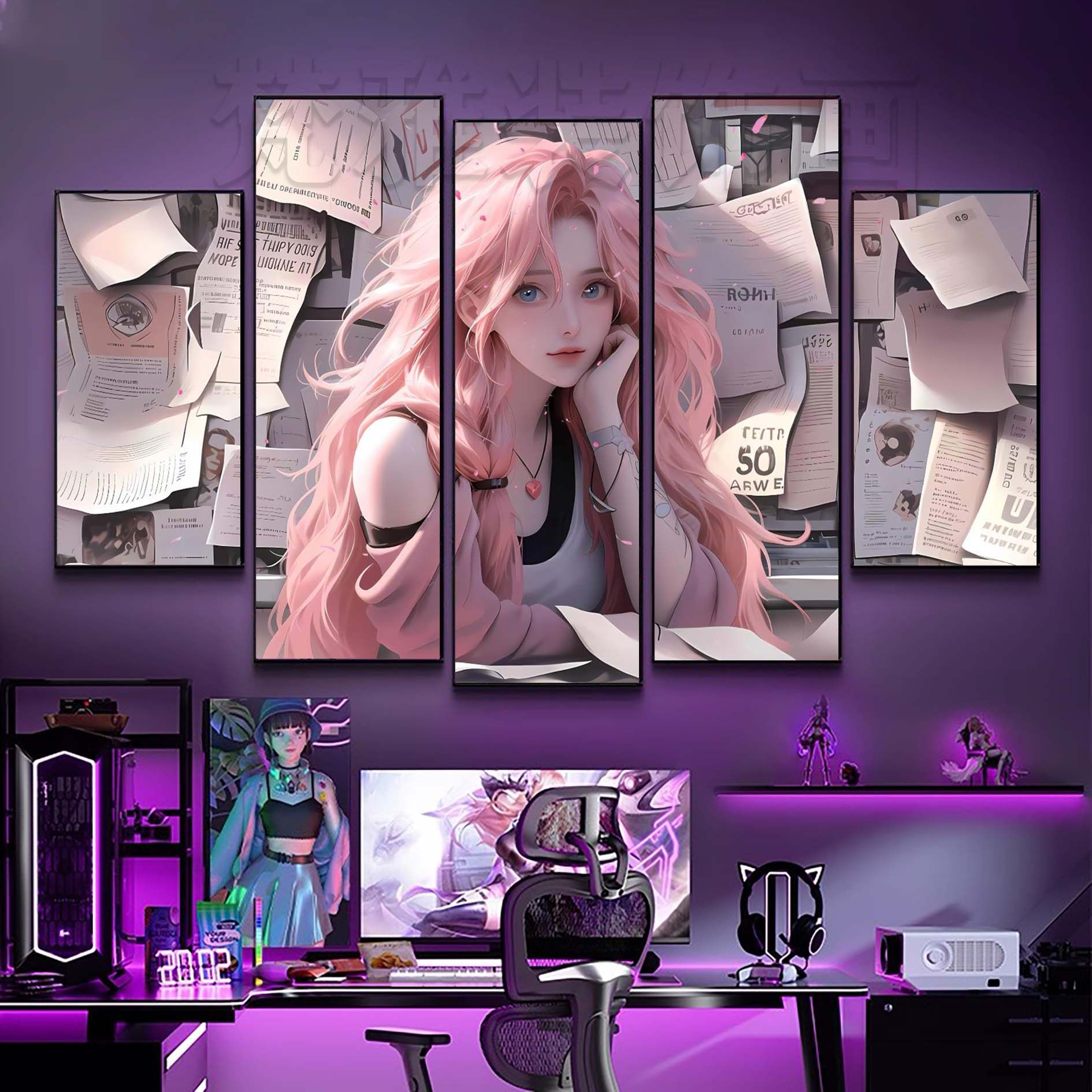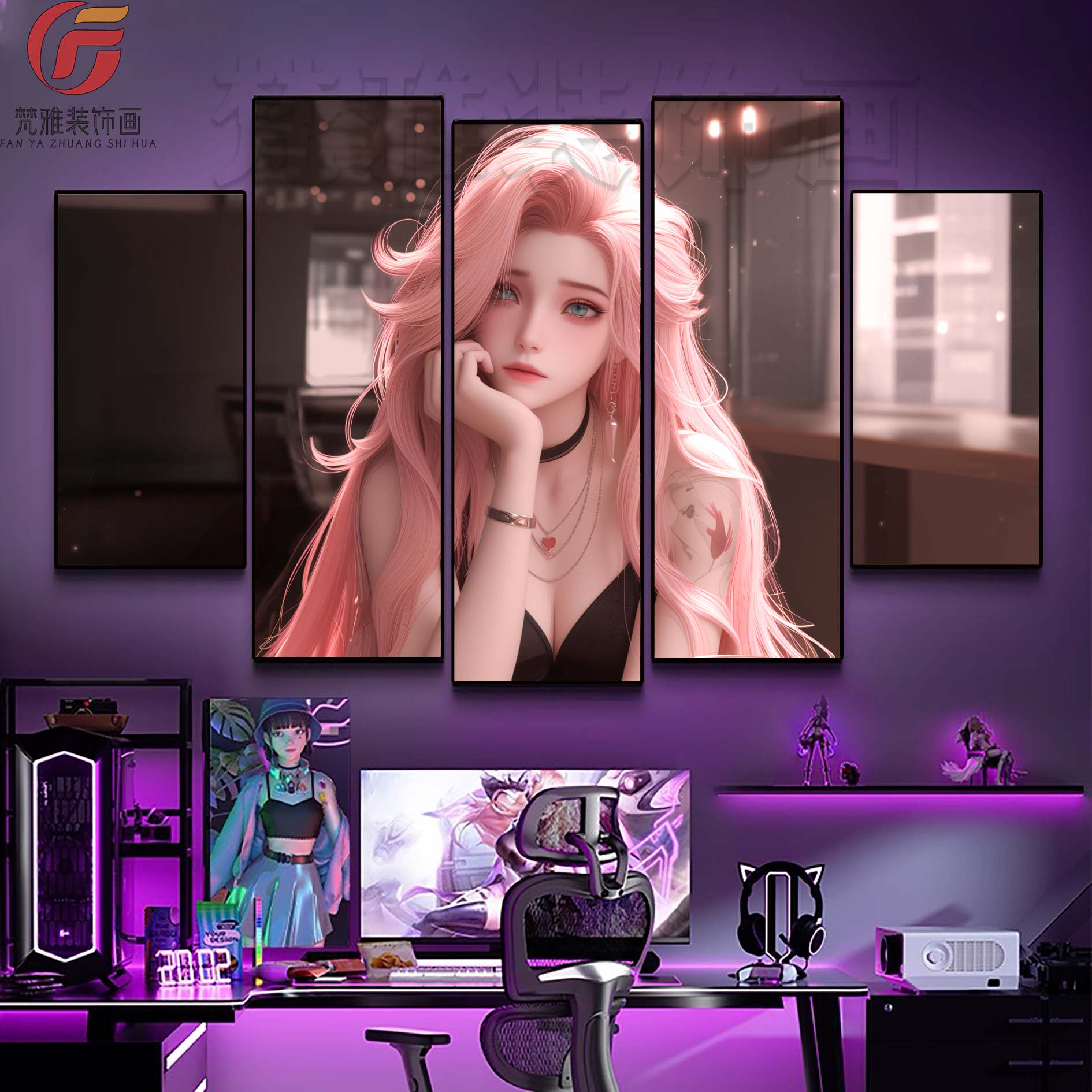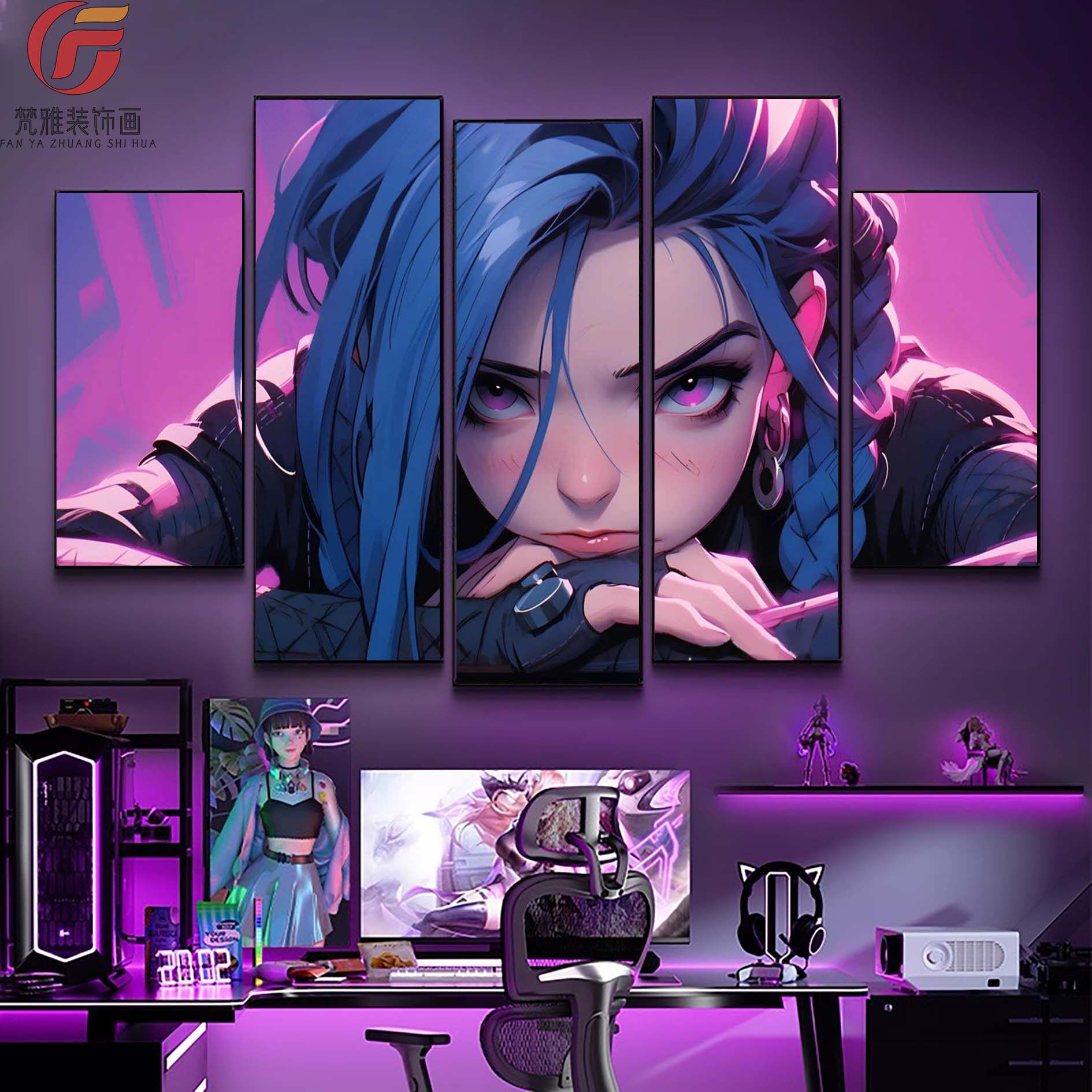 英雄联盟金克丝五联挂画暴走萝莉电竞房酒店网咖客厅卧室墙装饰画