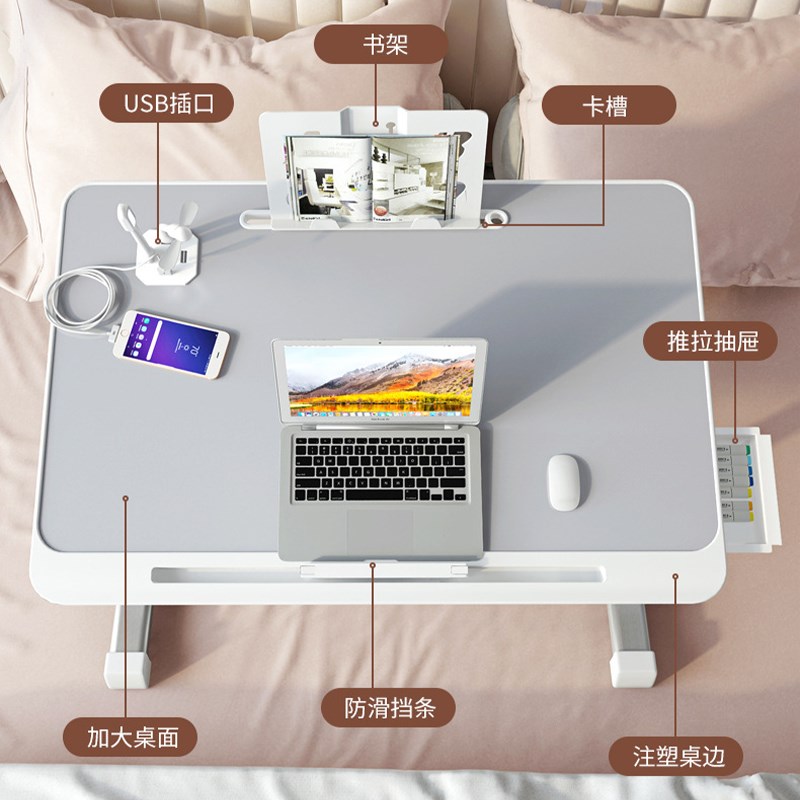 折叠桌出租屋寝室可折叠电脑桌可升降卧室笔记本家用懒人床边桌