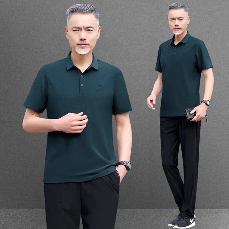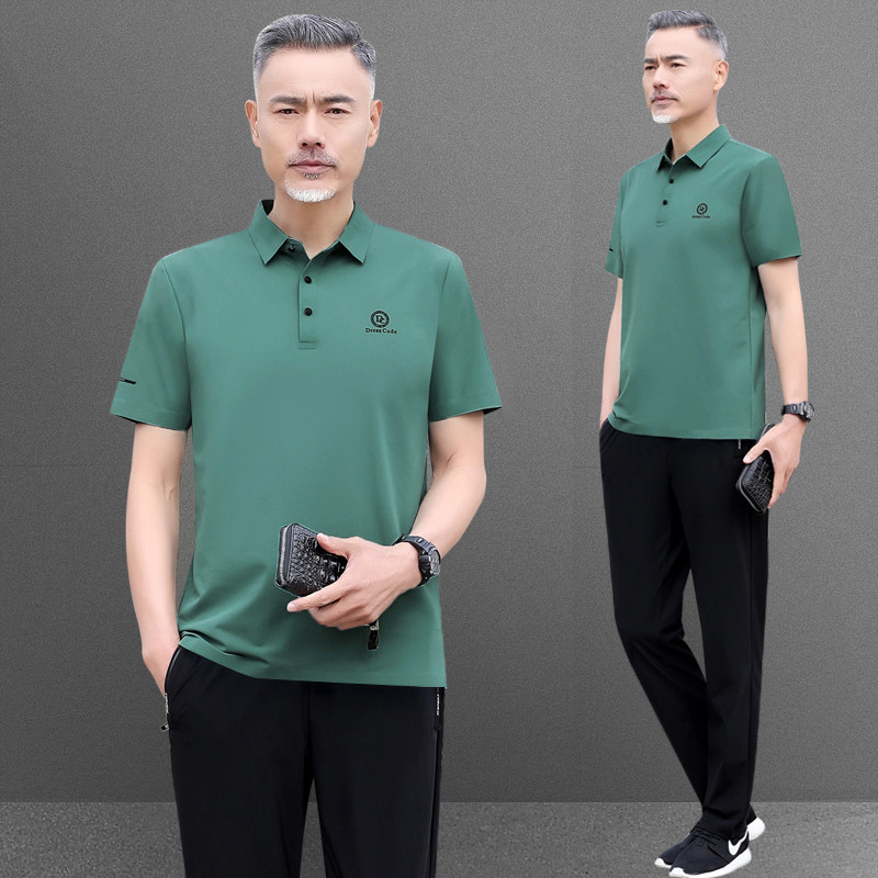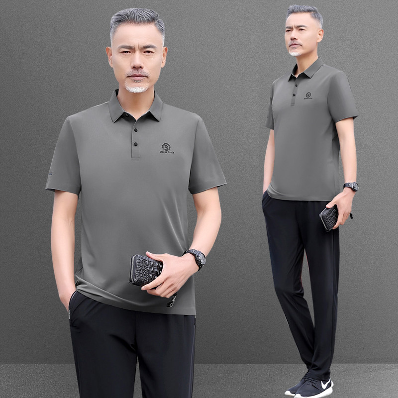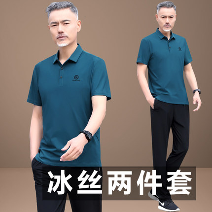 爸爸夏装运动套装男士2025新款中老年短袖t恤父亲节夏季冰丝衣服