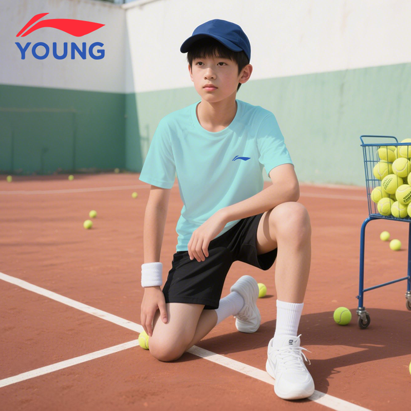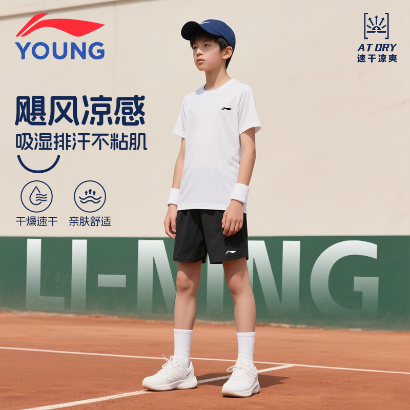 李宁童装儿童t恤2025新款中大童女童圆领速干男童透气薄短袖夏装