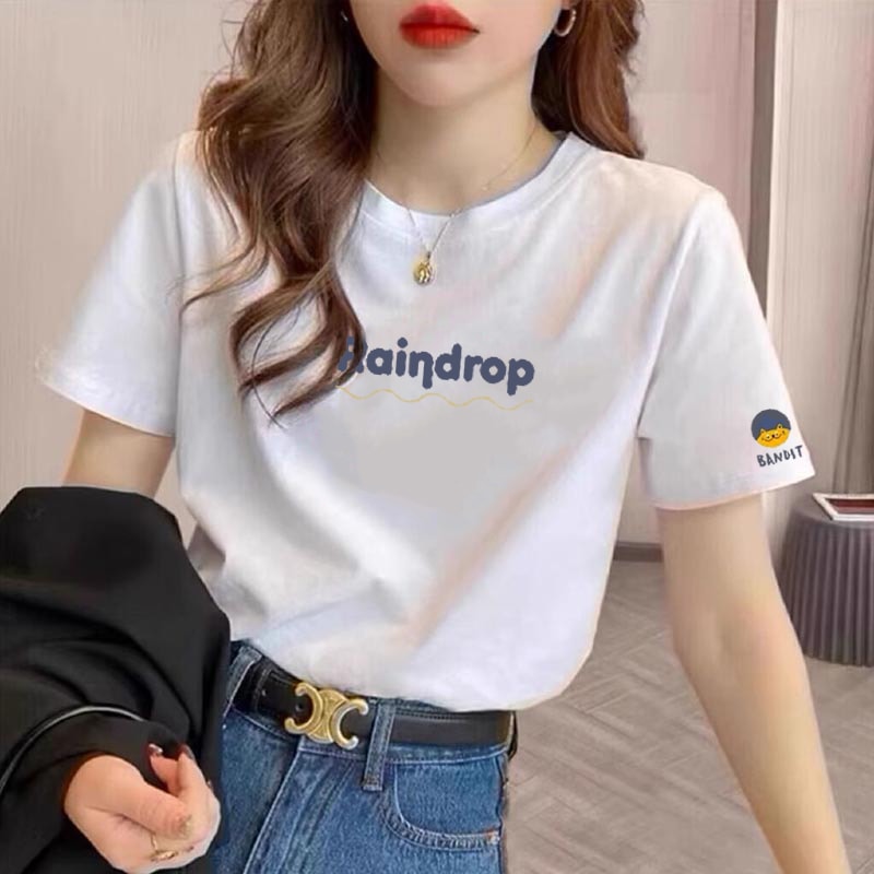 欧货红色正肩短袖t恤女2025新款本命年纯棉宽松创意印花半袖上衣
