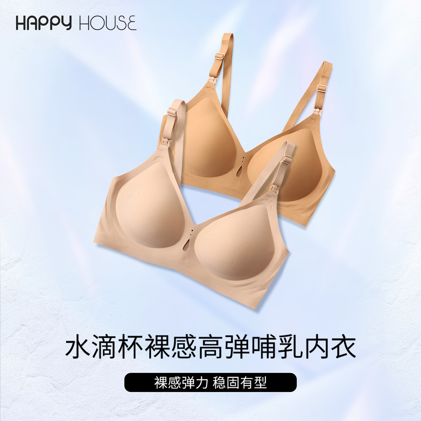 快乐屋裸感哺乳内衣防下垂聚拢产后喂奶专用胸罩防溢乳孕妇文胸