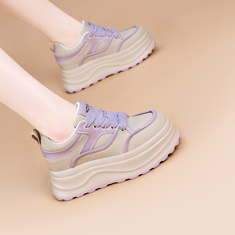 厚底内增高小白鞋女爆款2025秋季新款真皮运动鞋休闲百搭松糕板鞋
