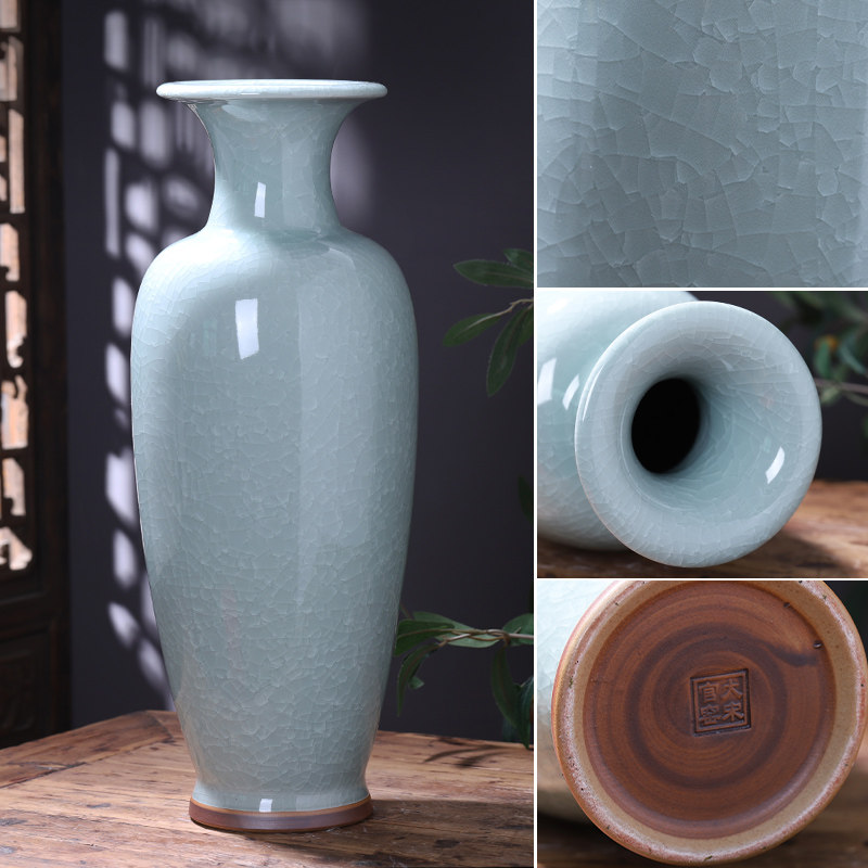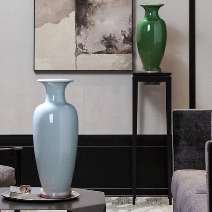 景德镇陶瓷器钧瓷花瓶摆件家居客厅落地大号装饰品仿古裂纹釉瓶子