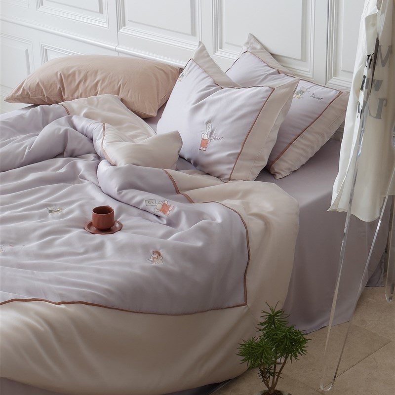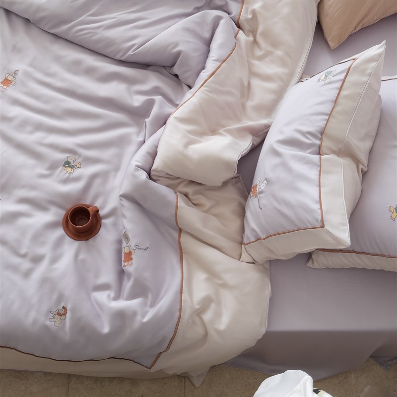 卡通夏季可爱刺绣60支天丝四件套 凉感丝滑裸睡床单被套床上用品