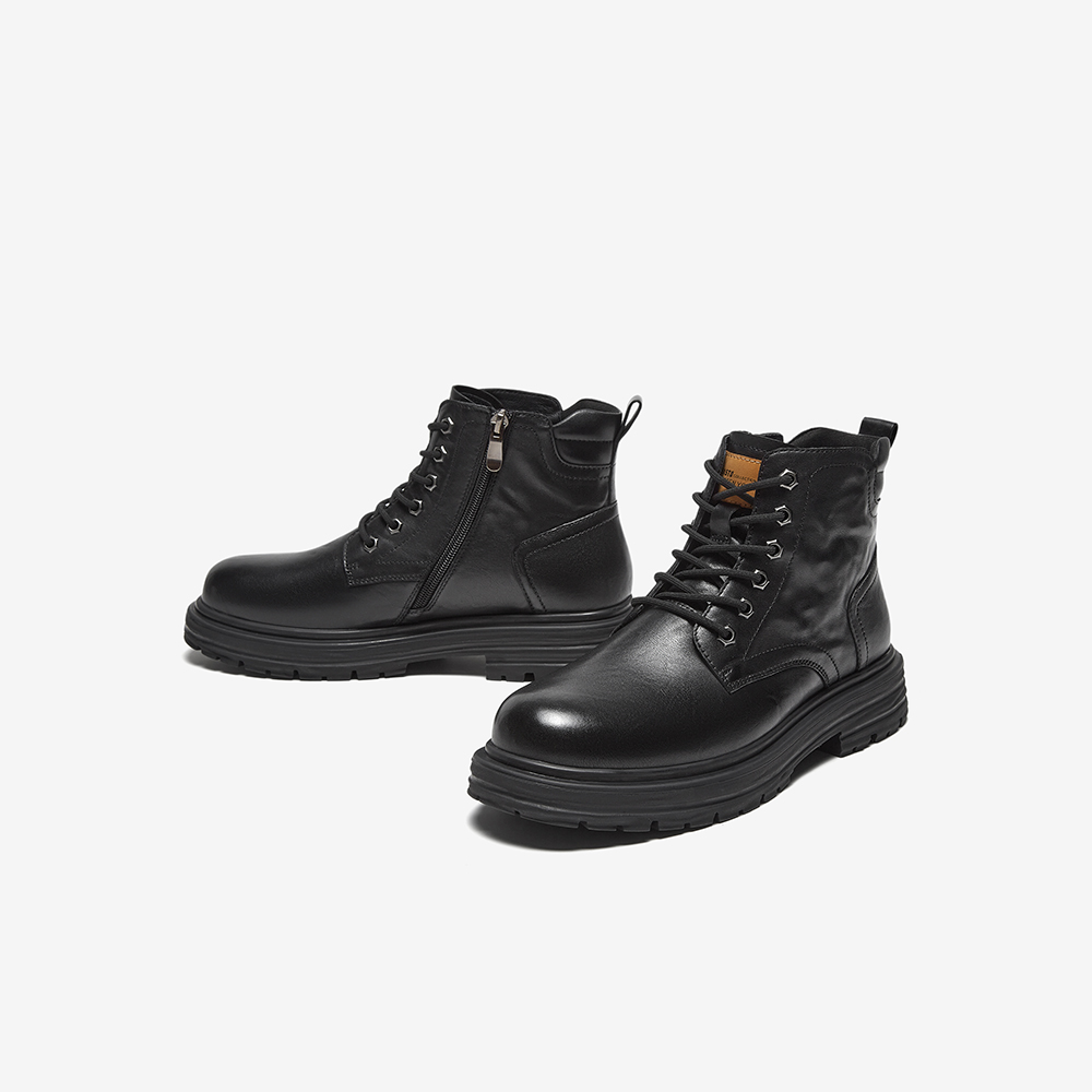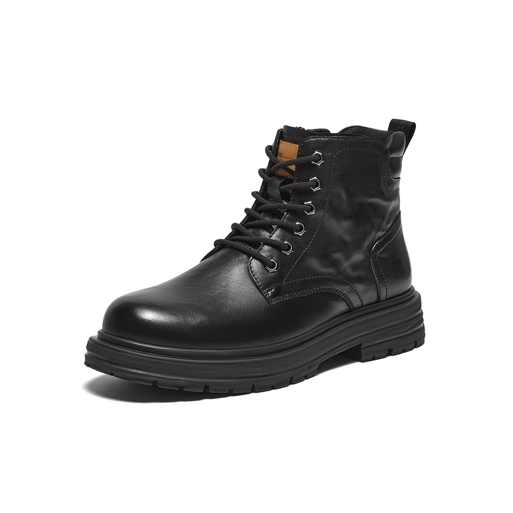 专柜正品百思图2024冬季加绒牛皮马丁靴厚底男棉鞋短靴EAX08DD4