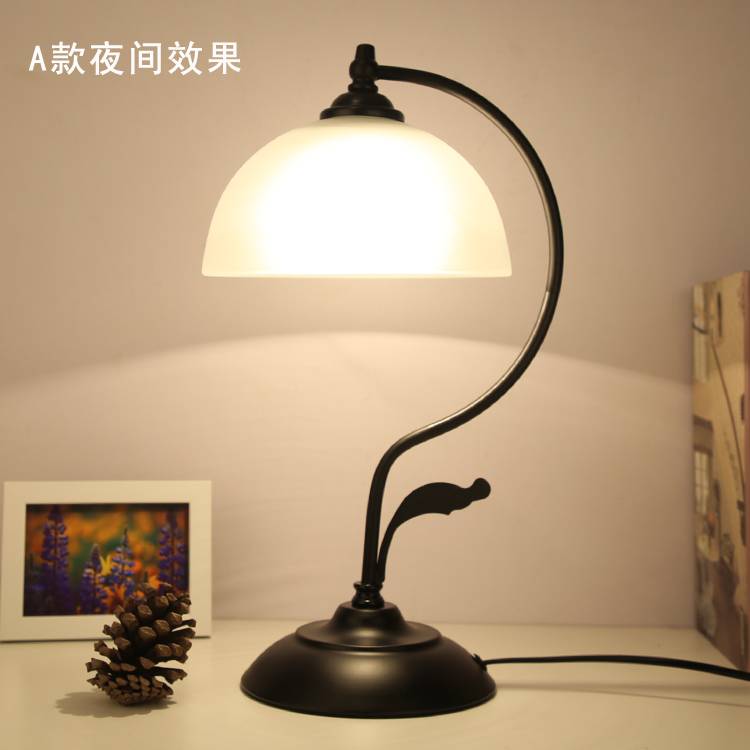 0A新中式古典台灯欧式复古卧室床头柜台灯美式书房玻璃可调光装饰