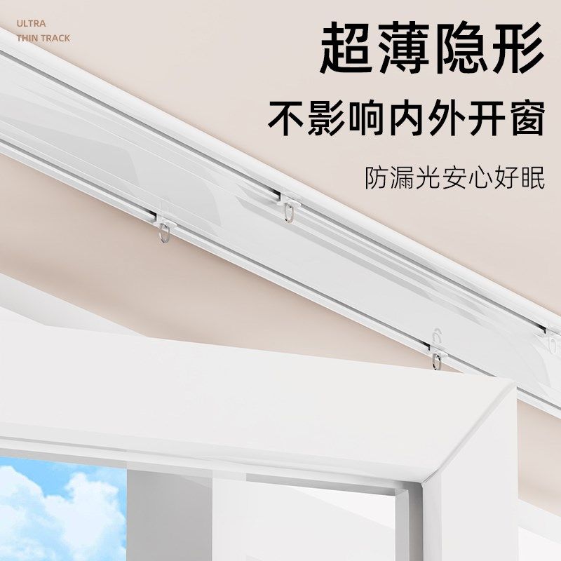 超薄双排窗帘轨道静音滑轨窗帘挂钩式隐形滑轨顶装双轨静音杆轨道