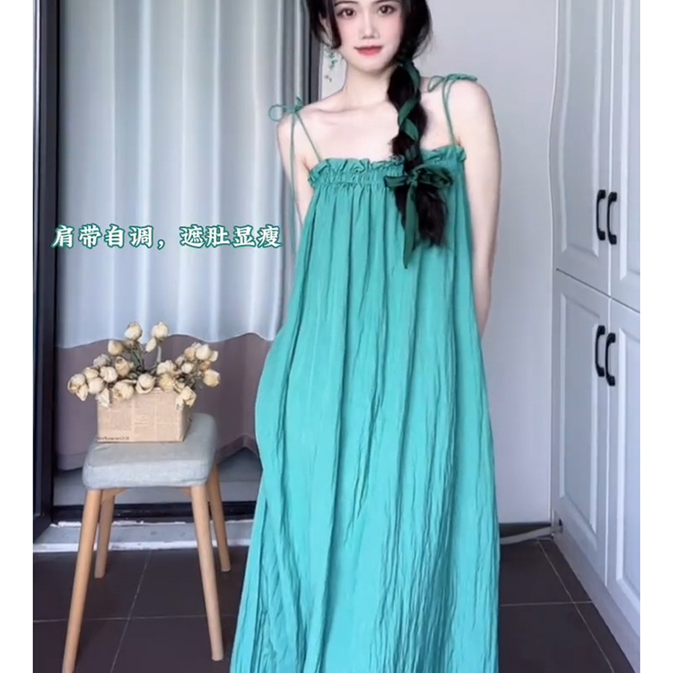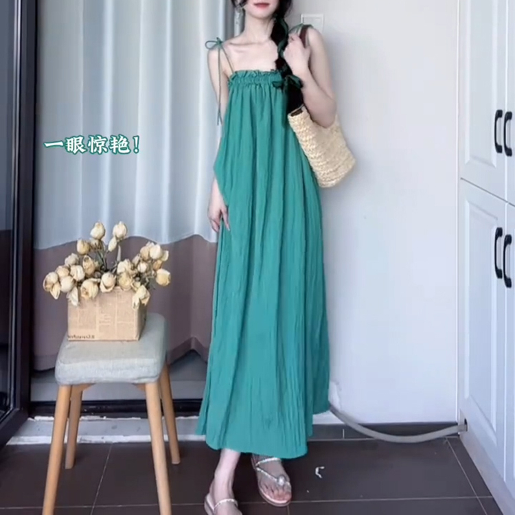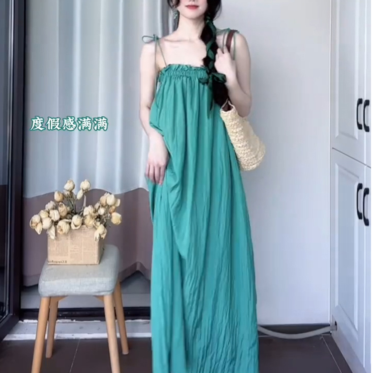 海边度假小清新抹胸吊带连衣裙女夏仙气超仙森系沙滩裙气质长裙子