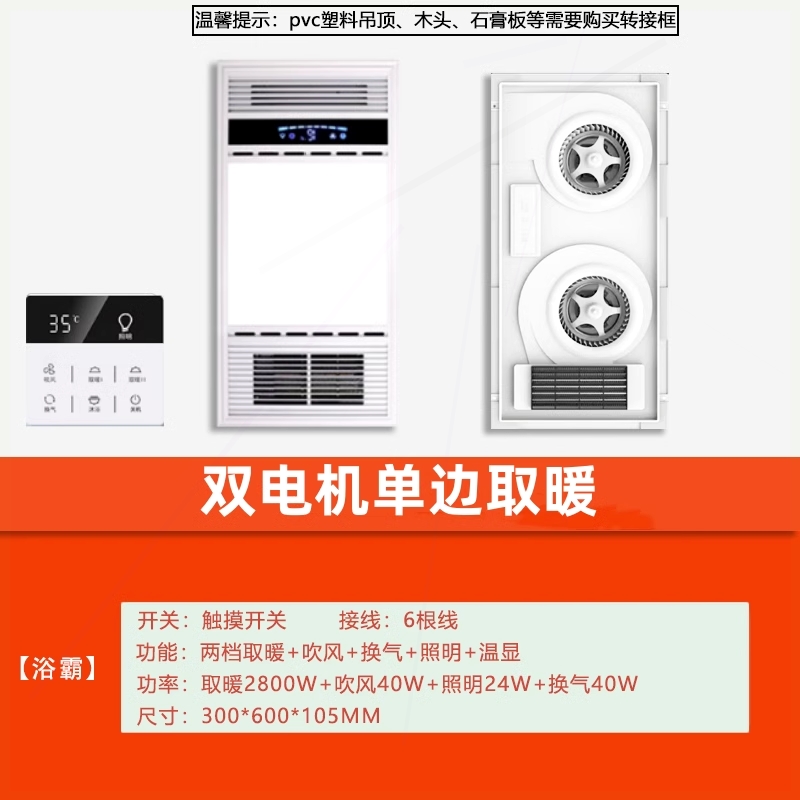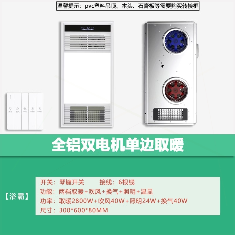生间浴室防潮风暖式浴霸灯取暖集成一体暖风机吊顶排气扇照明卫