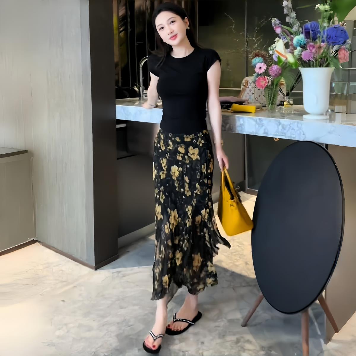 复古不规则飘逸碎花半身裙