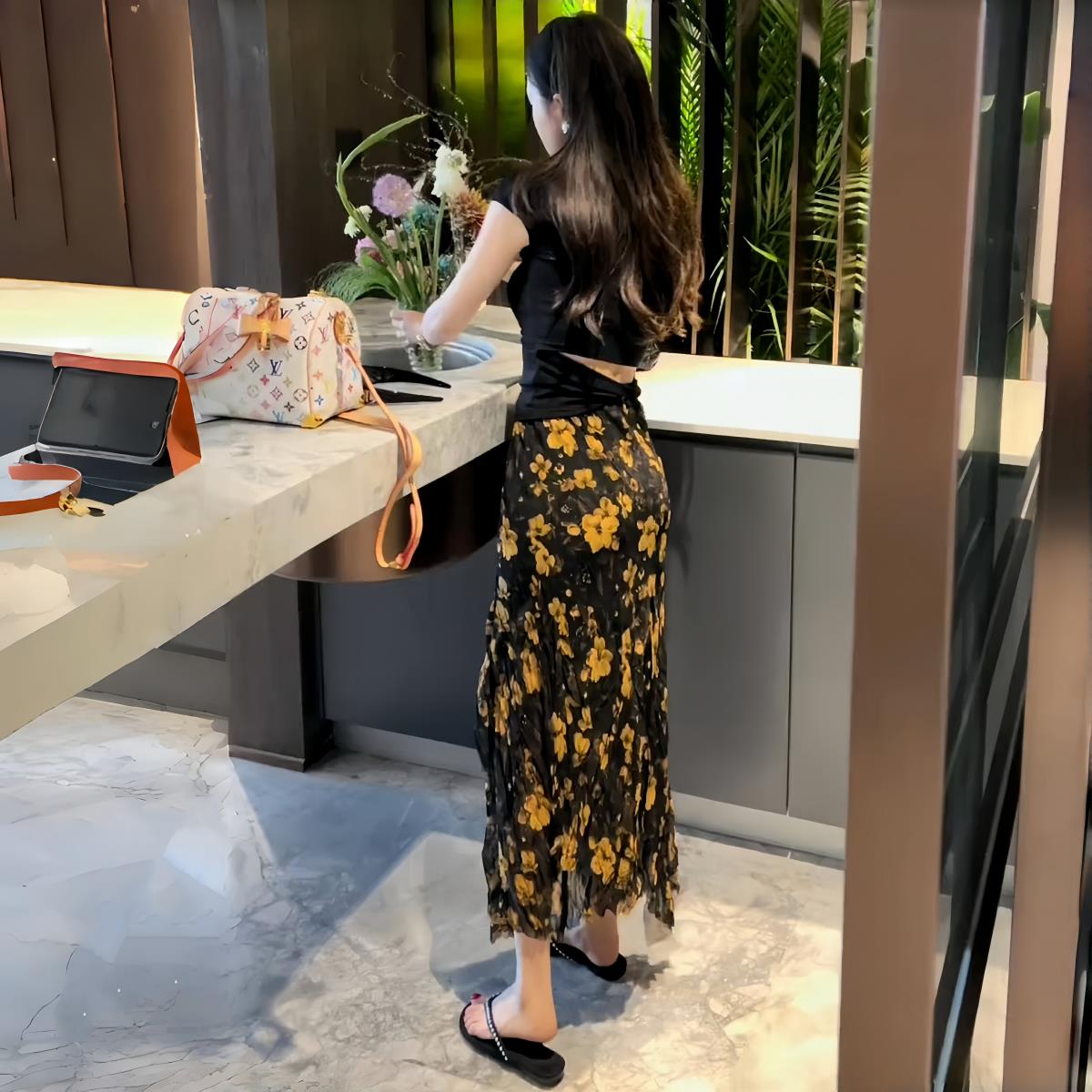 法式复古不规则飘逸碎花半身裙女2025夏度假风高腰开叉包臀长裙