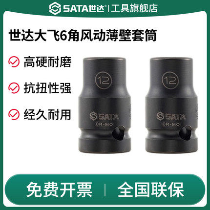 SATA世达大飞六角风动薄壁套筒1/2加长气动扳手六角摩托汽车维修