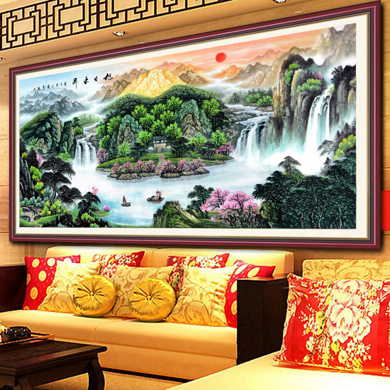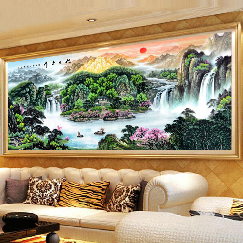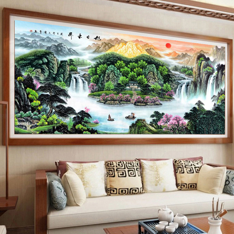 2025绒布钻石画满钻新款旭日东升客厅5d贴钻十字绣中国风钻石绣