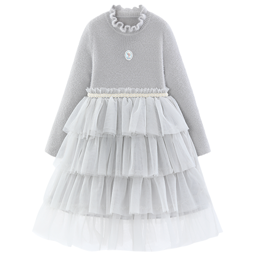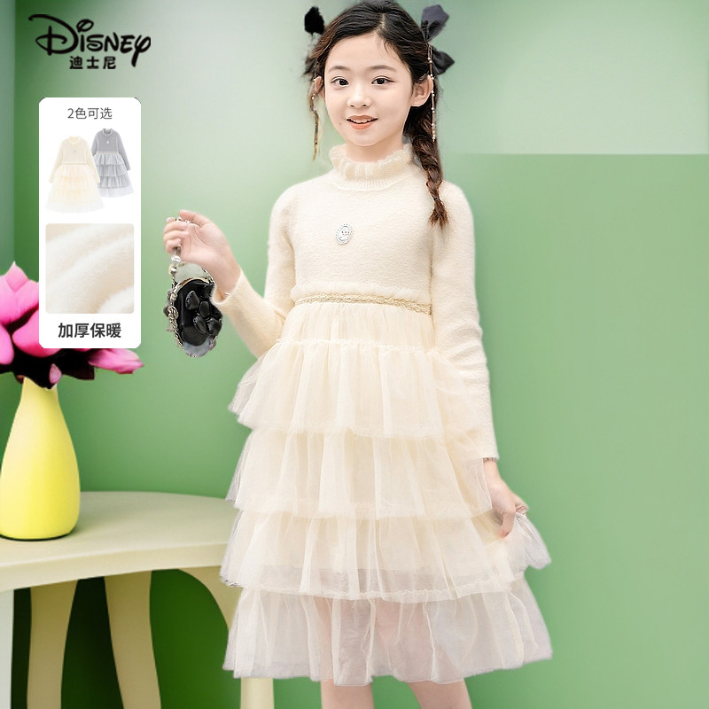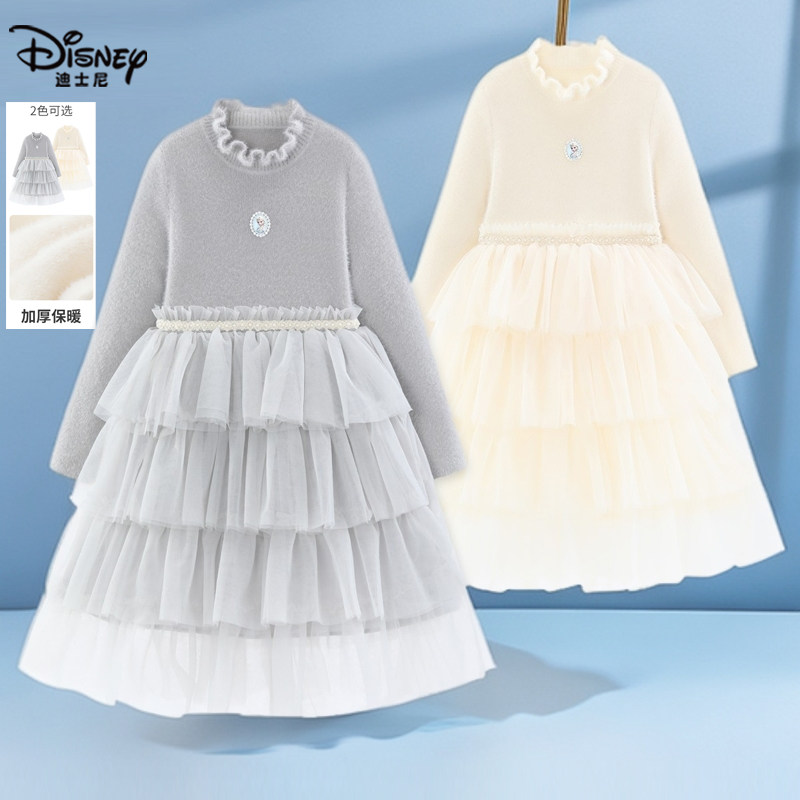 迪士尼童装女童长袖连衣裙女孩毛衣裙春秋季公主裙子打底裙蛋糕裙
