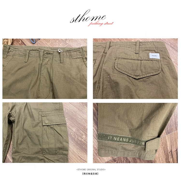 石头家小脚直筒多口袋工装长裤 潮流男士裤子九分 哈伦街头魔术贴