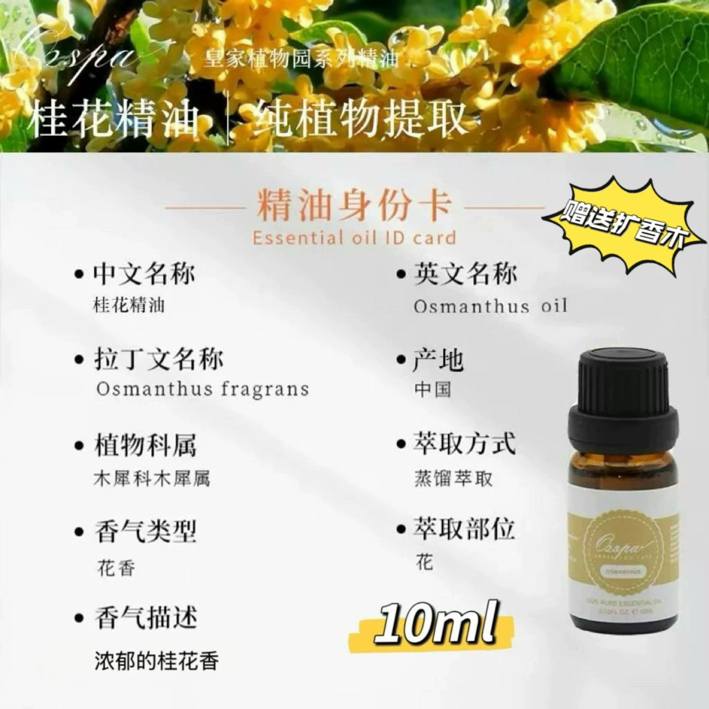 Ozspa桂花精油天然植物萃取芳疗失眠香薰安神舒缓卧室香赠扩香木