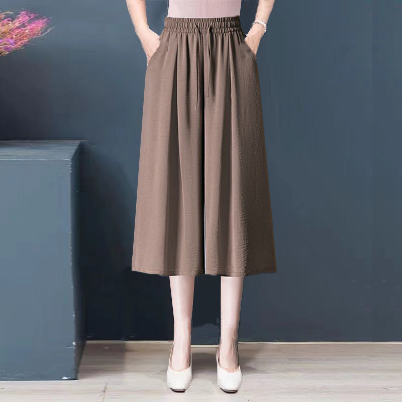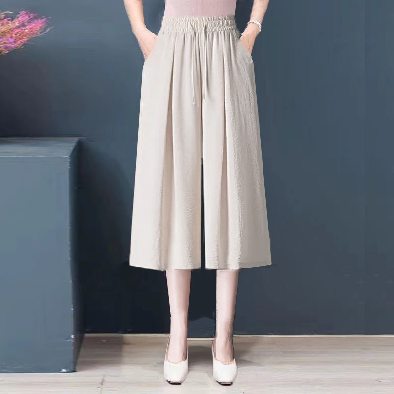 清仓冰丝麻阔腿七分裤女2025夏季新款高腰垂感韩版休闲裤宽松裙裤