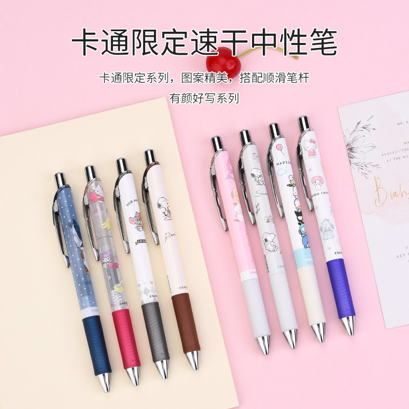 日本pentel派通bln75三丽鸥史努比鲨鱼猫卡通限定速干黑色中性笔