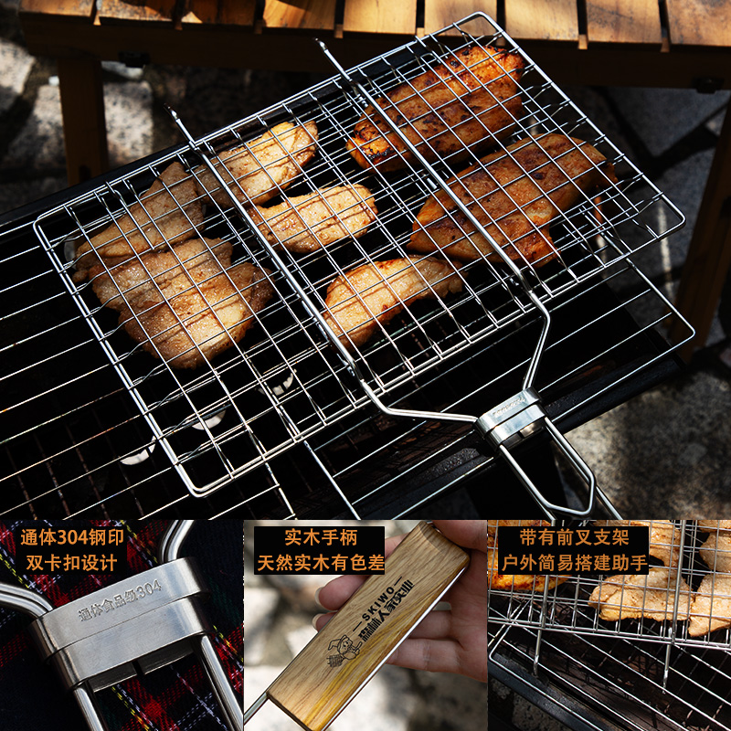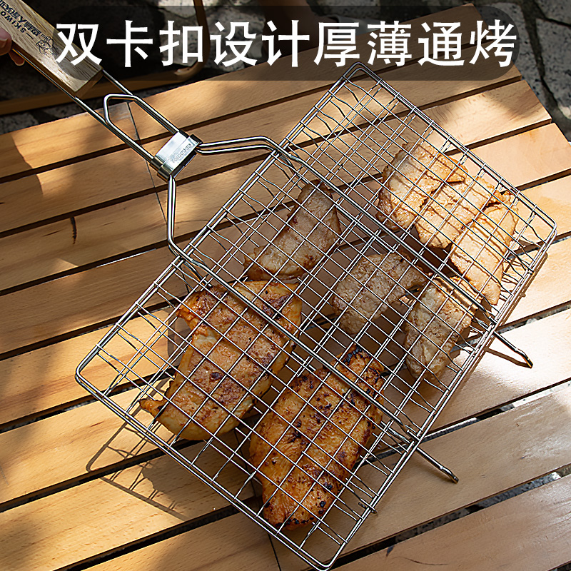 烤鱼夹304不锈钢烧烤架专用烤鸡工具烤肉神器烧辣椒用具夹板烤网