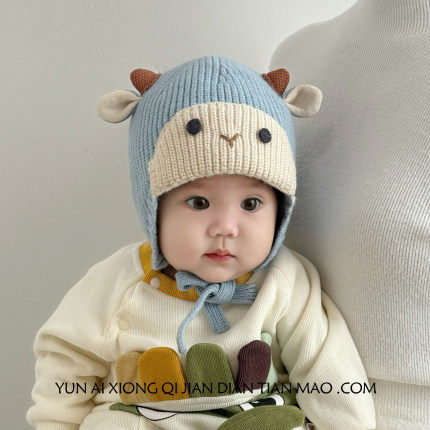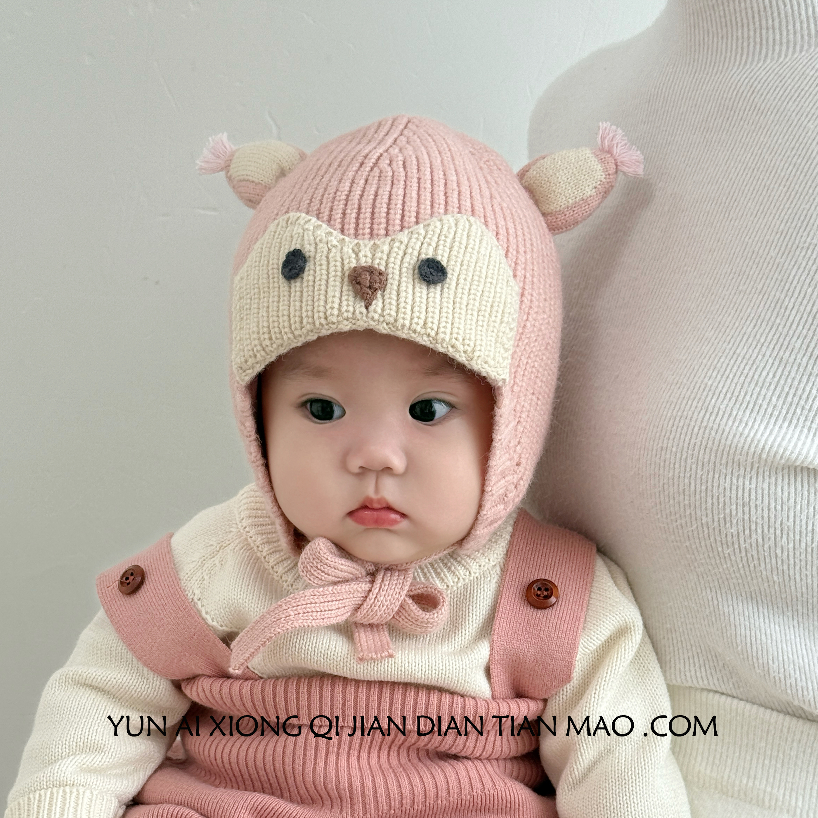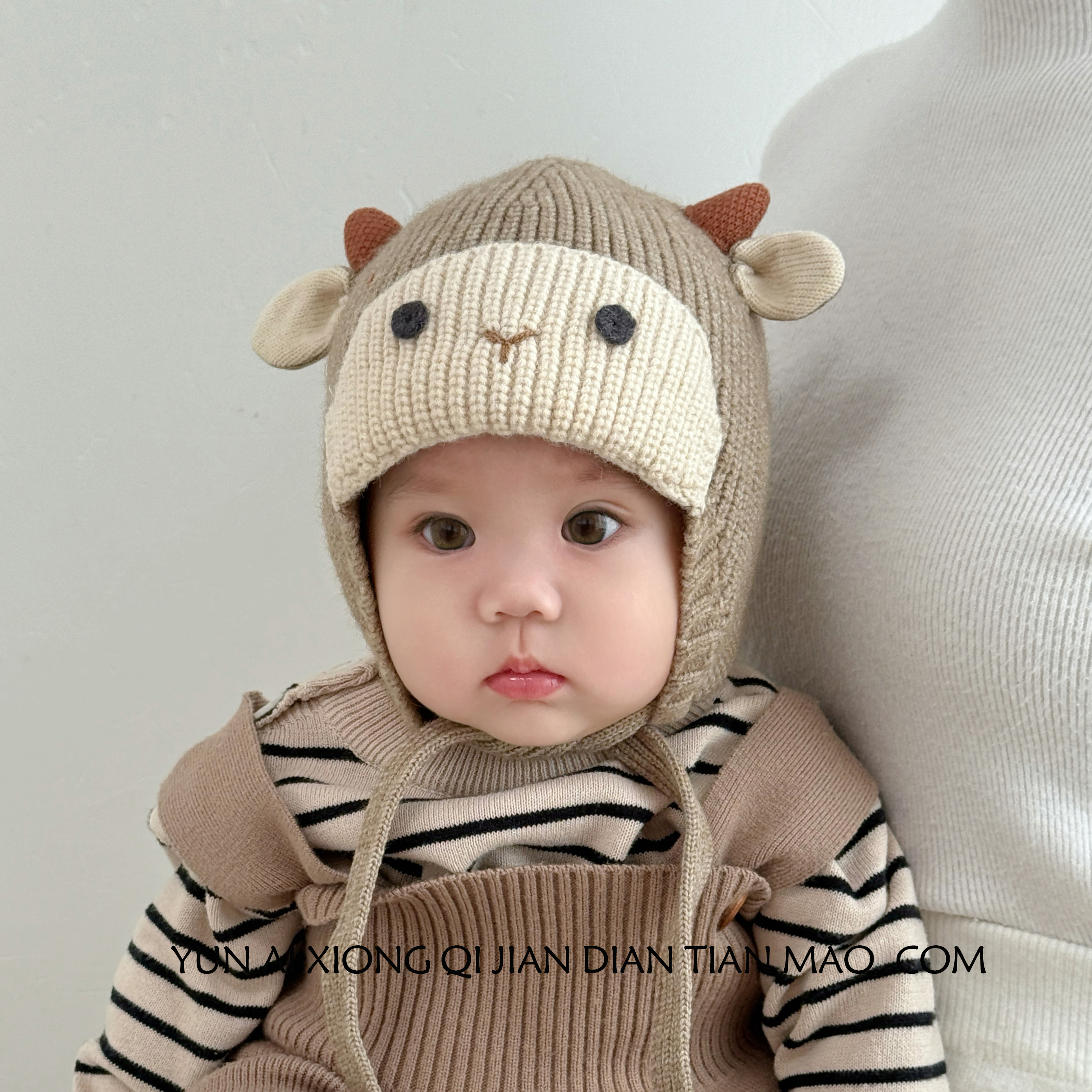 男宝宝秋冬帽子婴儿针织儿童毛线帽女宝婴幼儿冬款男童冬天护耳帽