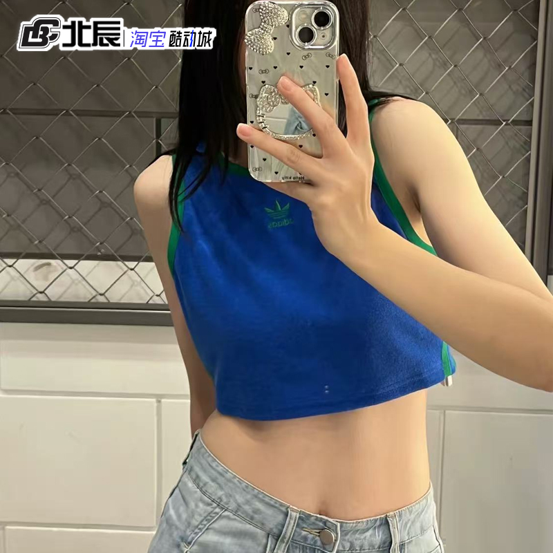 adidas三叶草夏季女子时尚三条纹舒适运动背心高腰吊带T恤JH0620
