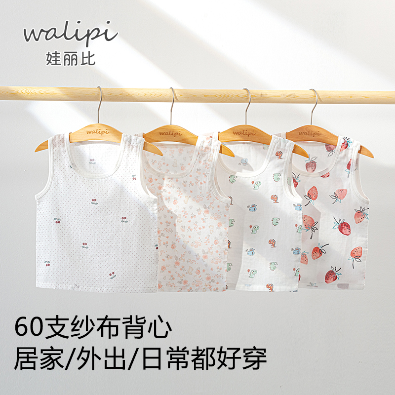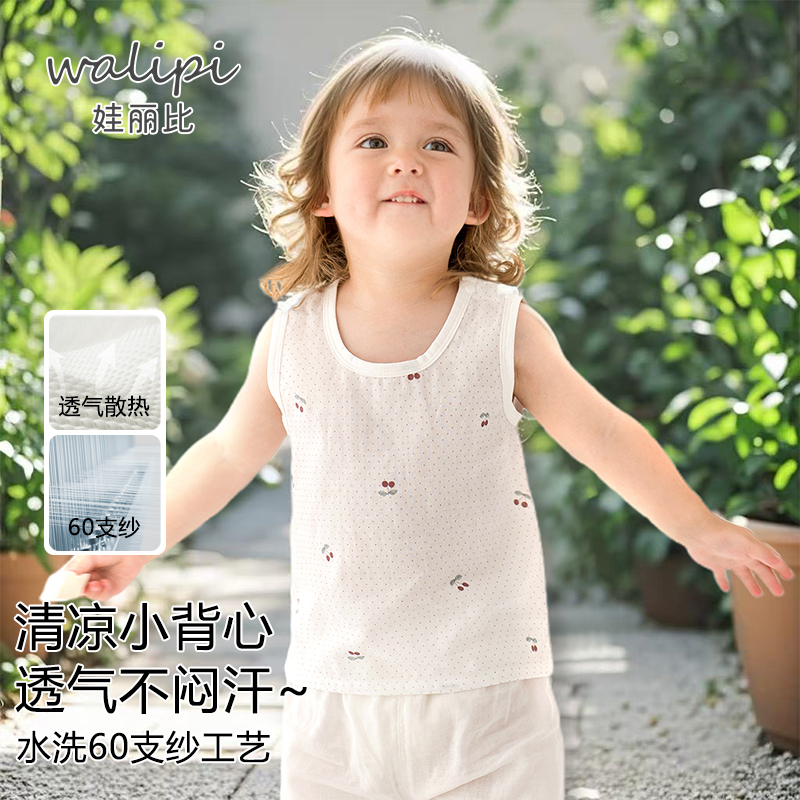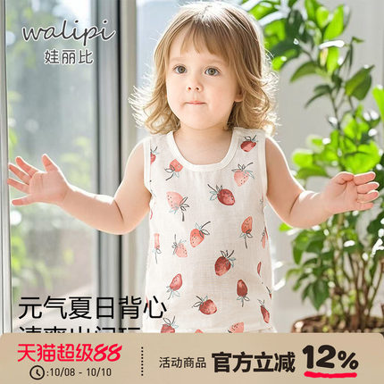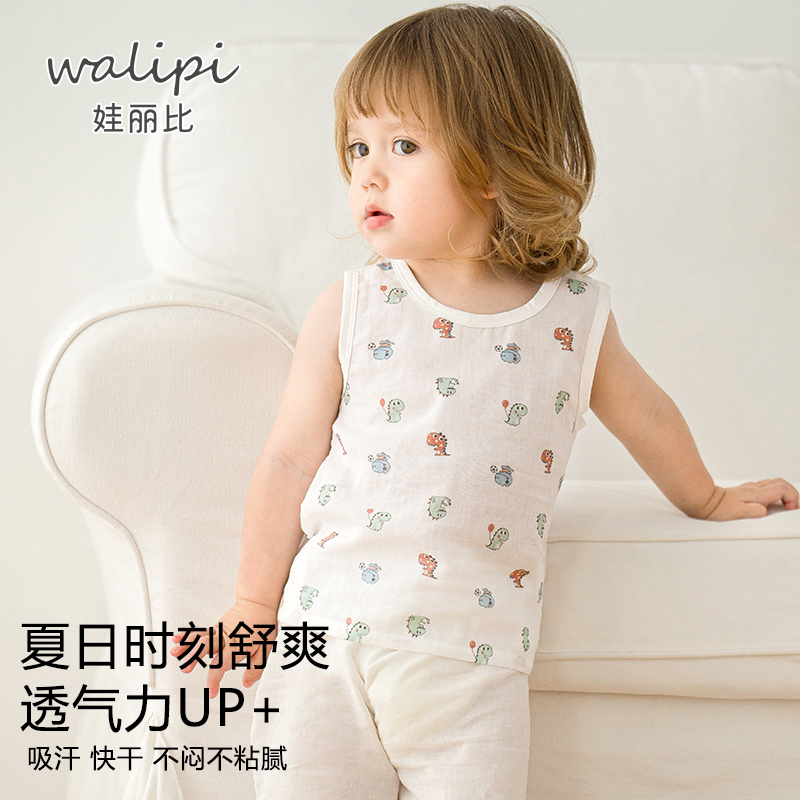 男女宝宝背心女童吊带儿童纯棉纱布无袖夏季上衣婴儿夏装薄款可爱