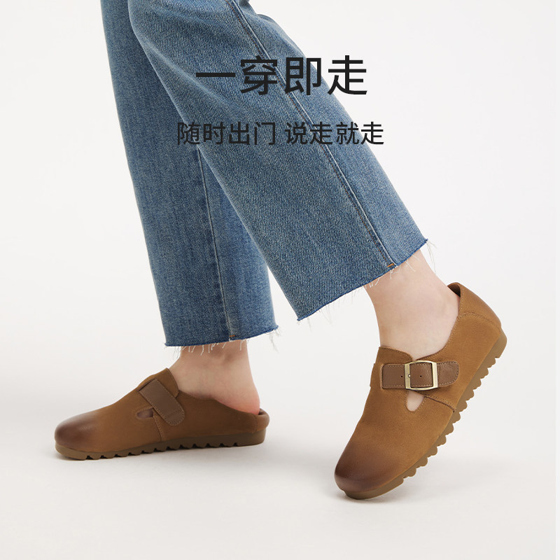 热风复古勃肯鞋女鞋2026年春季新款杏色时尚单鞋通勤外穿休闲鞋子
