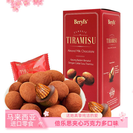 倍乐思牛奶巧克力盒装200克休闲零食马来西亚进口杏仁夹心巧克力