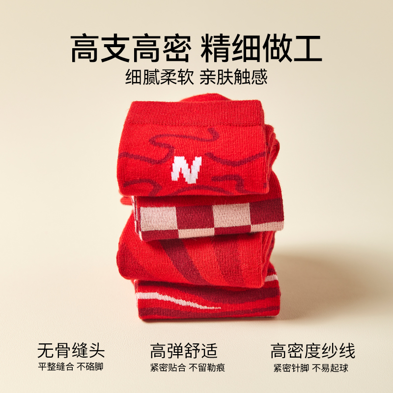 猫人红色袜子本命年棉袜属蛇年男女情侣一对结婚礼物秋冬季中筒袜