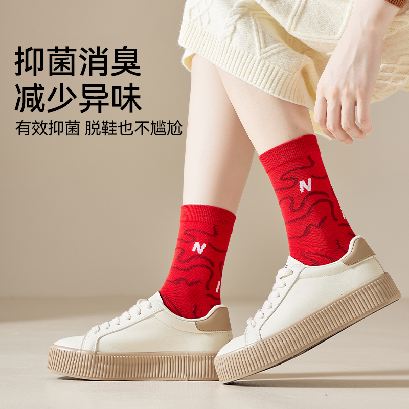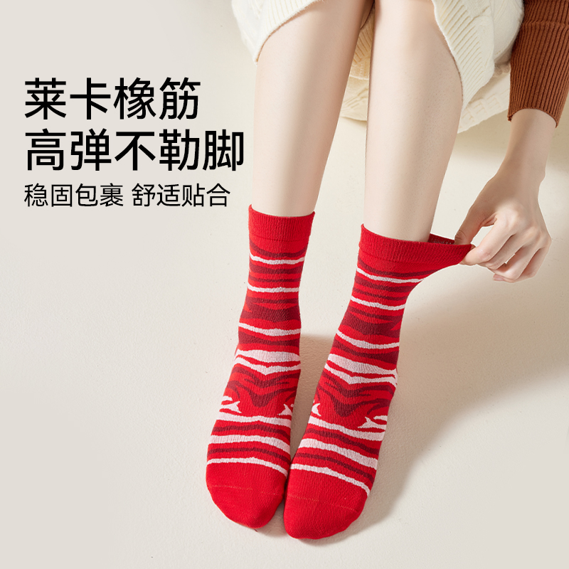 猫人红色袜子本命年棉袜
