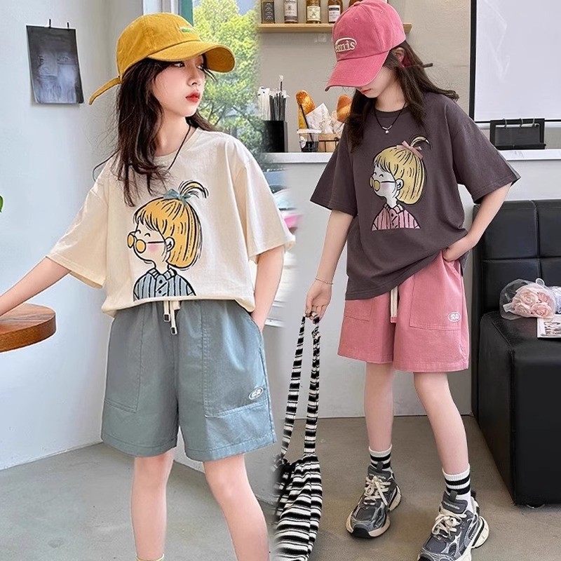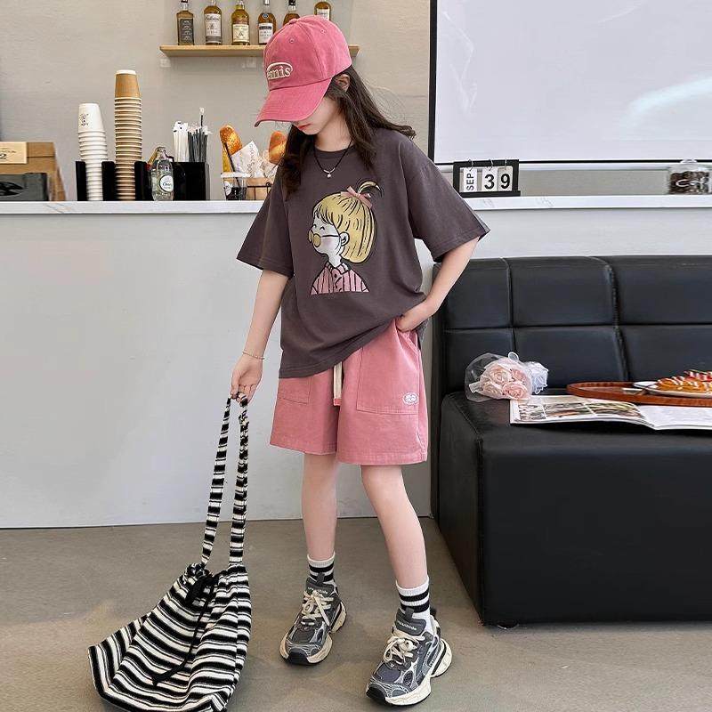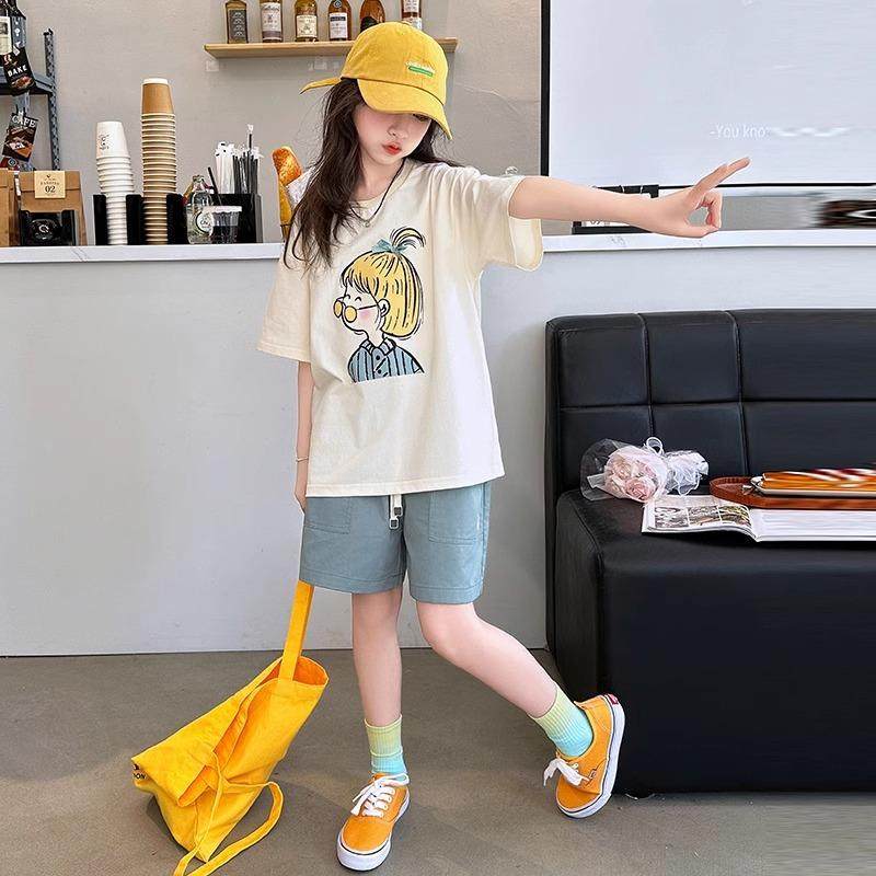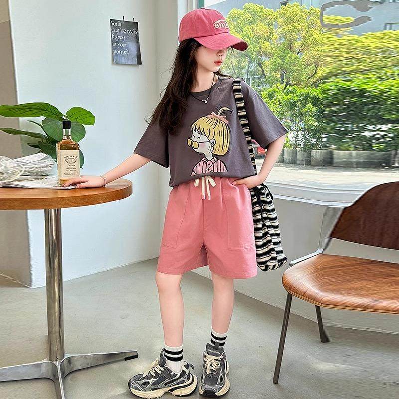 女童夏装套装2025新款女大童夏季T恤短袖短裤纯棉休闲运动两件套