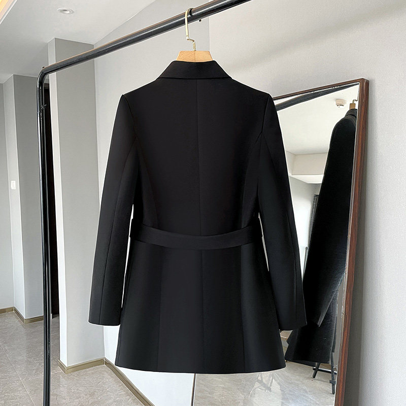 南俪影2025春秋新款气质西装外套女收腰修身双排扣设计感小西服
