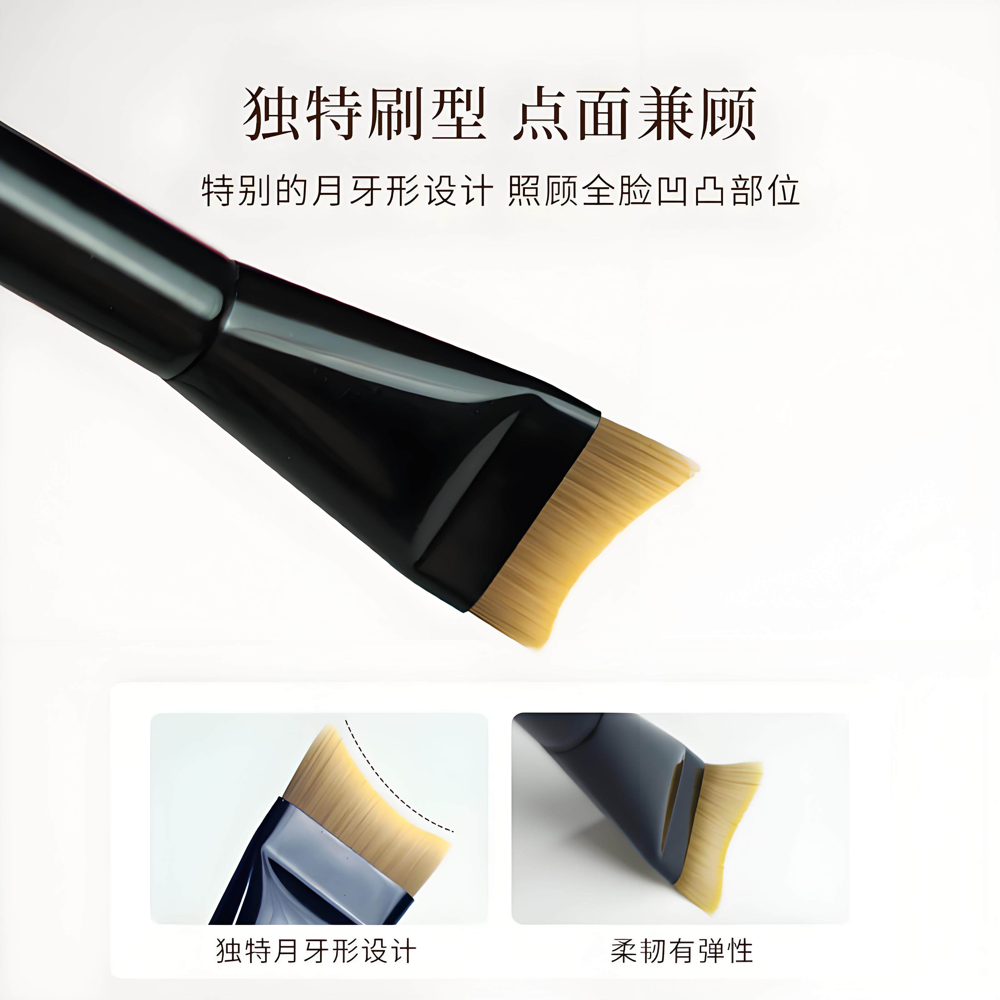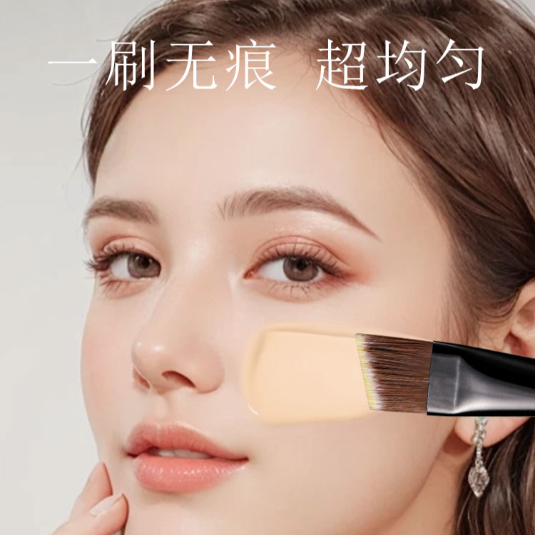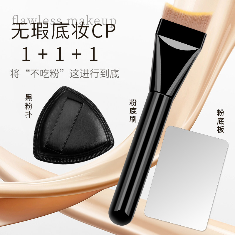 三件套一字型扁头粉底刷加调色板盘黑凤梨粉扑超薄不吃粉底液专用
