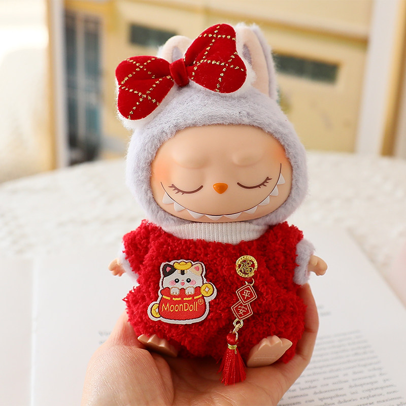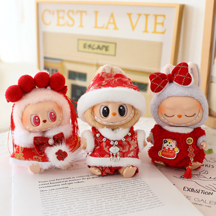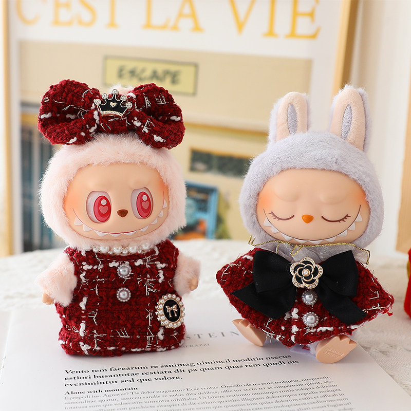 labubu新年衣服马卡龙拉布布挂件坐坐派对娃衣着替一二三代衣服鞋