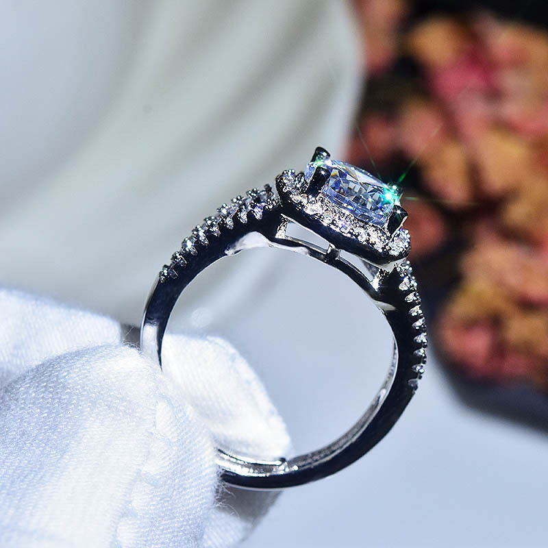 少女2克拉结婚钻戒八心八箭双层镶满钻仿真莫桑钻镀白金闪亮戒指