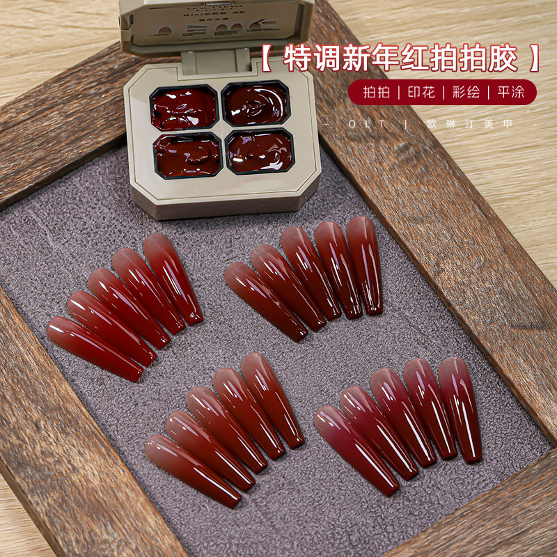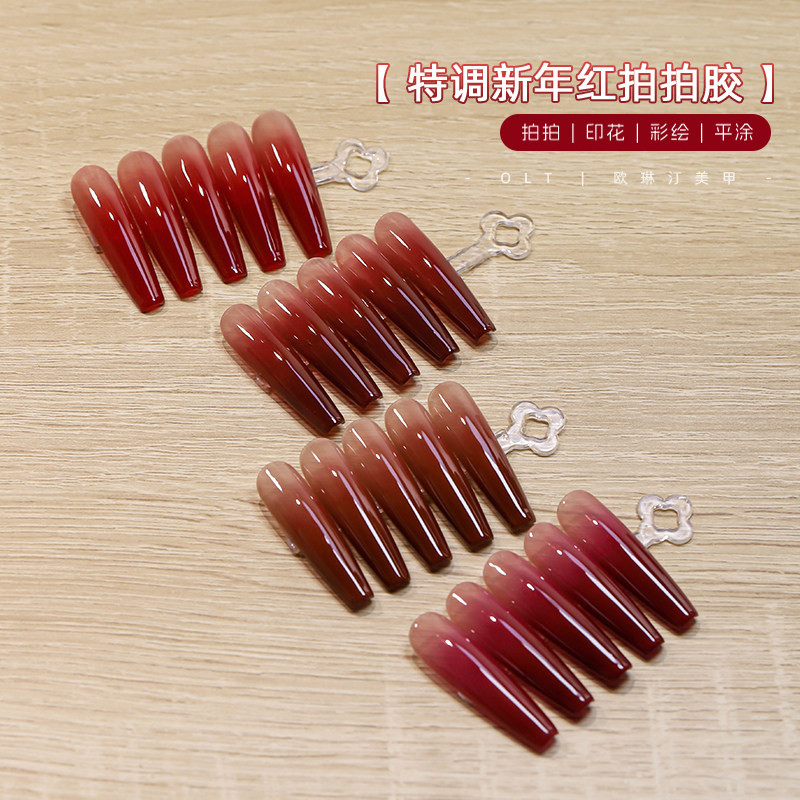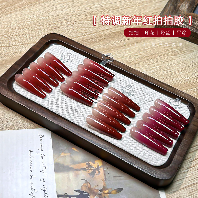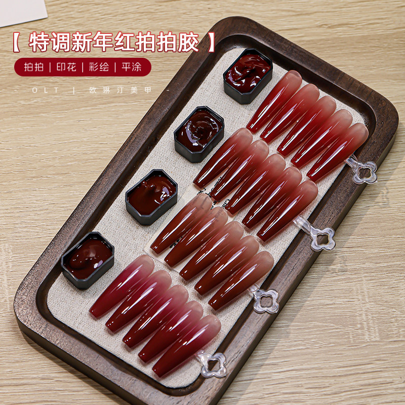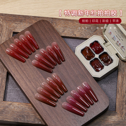 欧琳汀美甲特调新年红拍拍胶渐变彩绘印花浮雕蹭粉平涂高饱和度