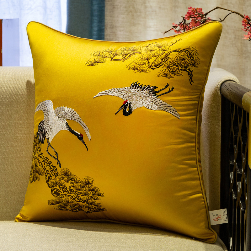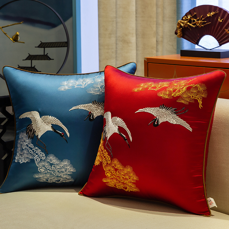 新中式松鹤刺绣抱枕中国风红木沙发靠垫含芯客厅家用大靠垫腰枕套